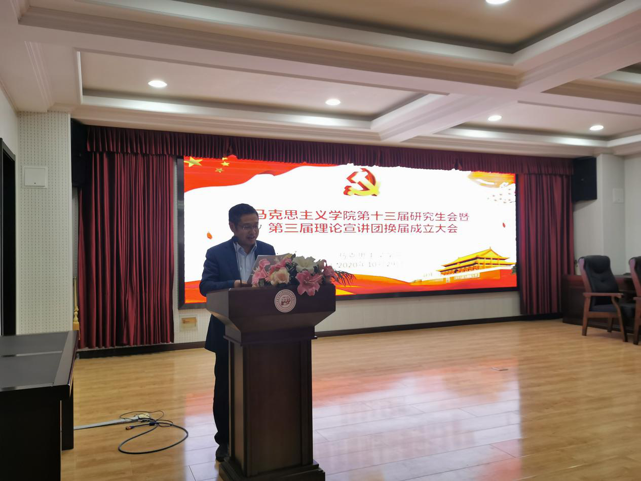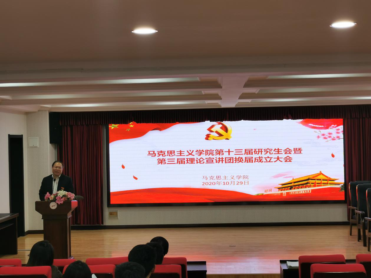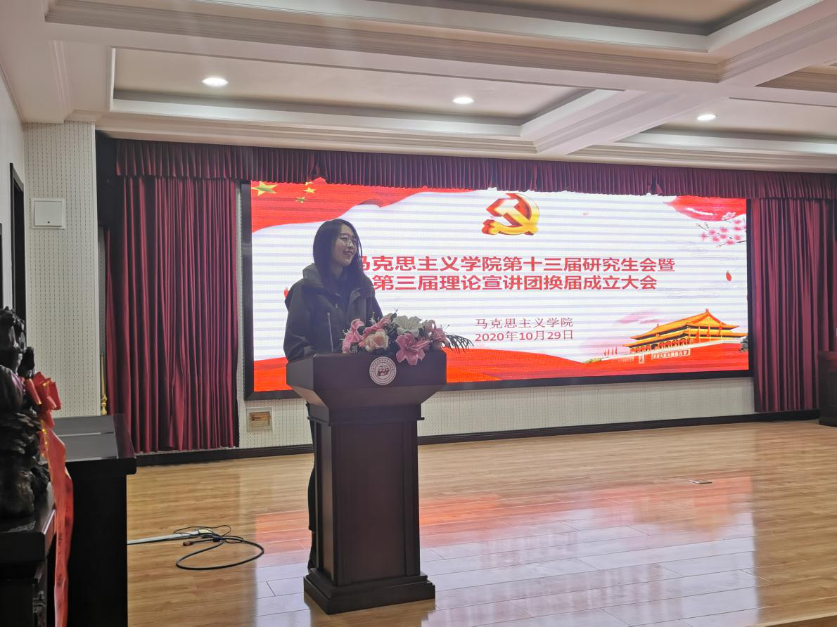 2020年10月29日下午,bevictor伟德官网在报告厅举行第十三届研究生会暨第三届理论宣讲团换届成立大会。马克思主义公司党总支书记张鸣、经理曹胜、副经理张运君,bevictor伟德官网第十二届研究生会主席团成员、各部门部长,第十三届研究生会全体成员以及习近平新时代中国特色社会主义思想宣讲团全体成员参加活动。本次活动由2020级韩新怡主持。