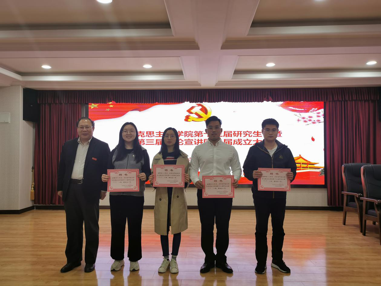 张鸣书记、曹胜经理、张运君副经理为第三届习近平新时代中国特色社会主义思想宣讲团全体成员颁发聘书。