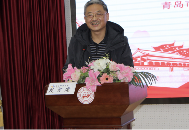 青岛市政治学会会长王振海向大会做工作报告,介绍政治学会近年来取得的成就。