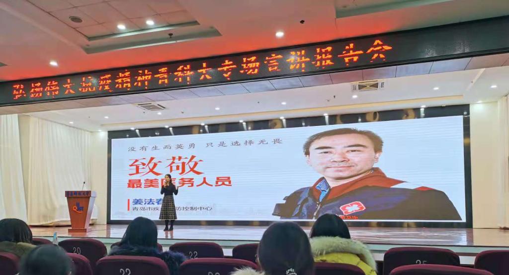 12月3号下午,由青岛市卫健委和bevictor伟德官网宣传部、团委、员工处、bevictor伟德官网联合主办的“聆听战疫故事 坚定使命担当”弘扬伟大的抗疫精神青科专场宣讲会于崂山校区第二报告厅顺利举行。bevictor伟德官网四位思政课教师带领300多名本科生聆听了报告。