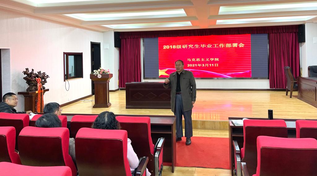 2021年3月11日上午,2018级研究生毕业工作部署会在公司报告厅召开。马克思主义公司党总支书记张鸣、经理曹胜、副经理张运君,全体2018级研究生及导师参加此次会议。会议由张运君副经理主持。