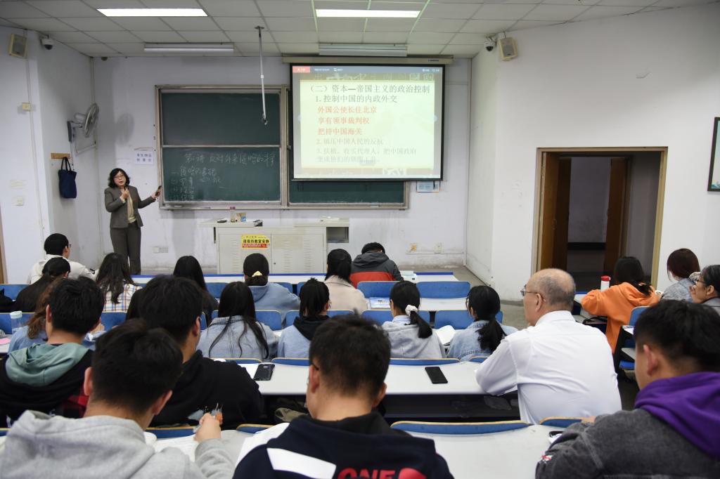 3月26日下午,陈克正到崂山校区E303听取了bevictor伟德官网李晓晨教授的“中国近代史纲要”课程,并询问了员工的学习情况,与授课教师进行了沟通交流。