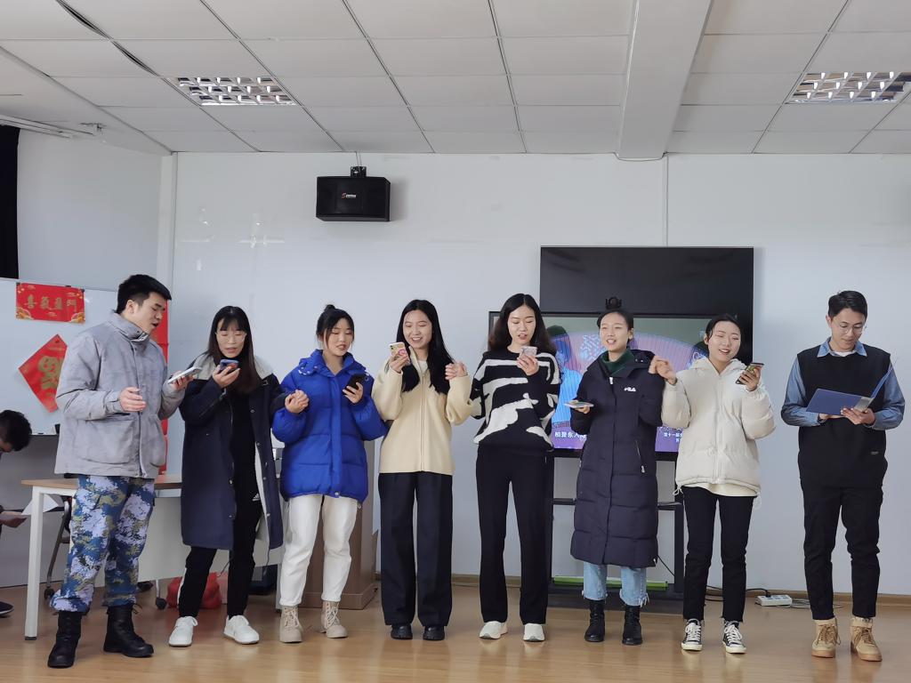 节目展示环节,现场气氛热烈,掌声雷动。老师和同学们热情高涨,积极参与,带来了形式多样、内容丰富的节目表演,包括歌曲《相亲相爱》、歌曲串烧、快板三句半、擒敌拳、大合唱等,赢得了现场一致好评。老师们带来的诗歌朗诵、歌曲《我和我的祖国》将现场氛围推向高潮。游戏环节中“你划我猜”等小游戏更是充分调动了全场老师、同学的热情,增加了茶话会的趣味性和参与度。