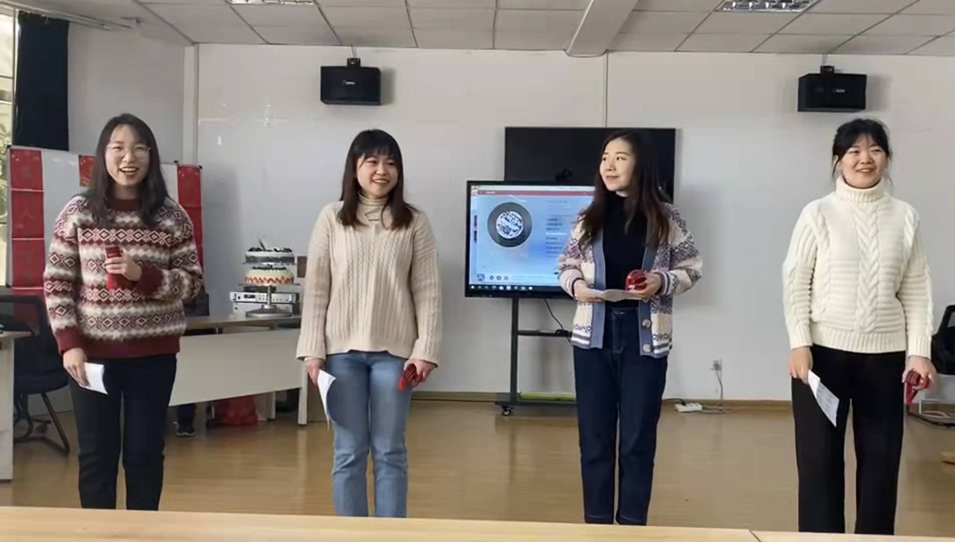 本次茶话会共分为老师寄语、节目展示、游戏互动三大环节。活动第一项由中国近现代史基本问题教研室主任王建美老师代表致辞。王老师表示,师生茶话会是一次很有意义的活动,师生之间通过茶话会的形式可以展开更加深入的交流。同时王老师也祝愿同学们在新的一年里不断成长、有所收获。