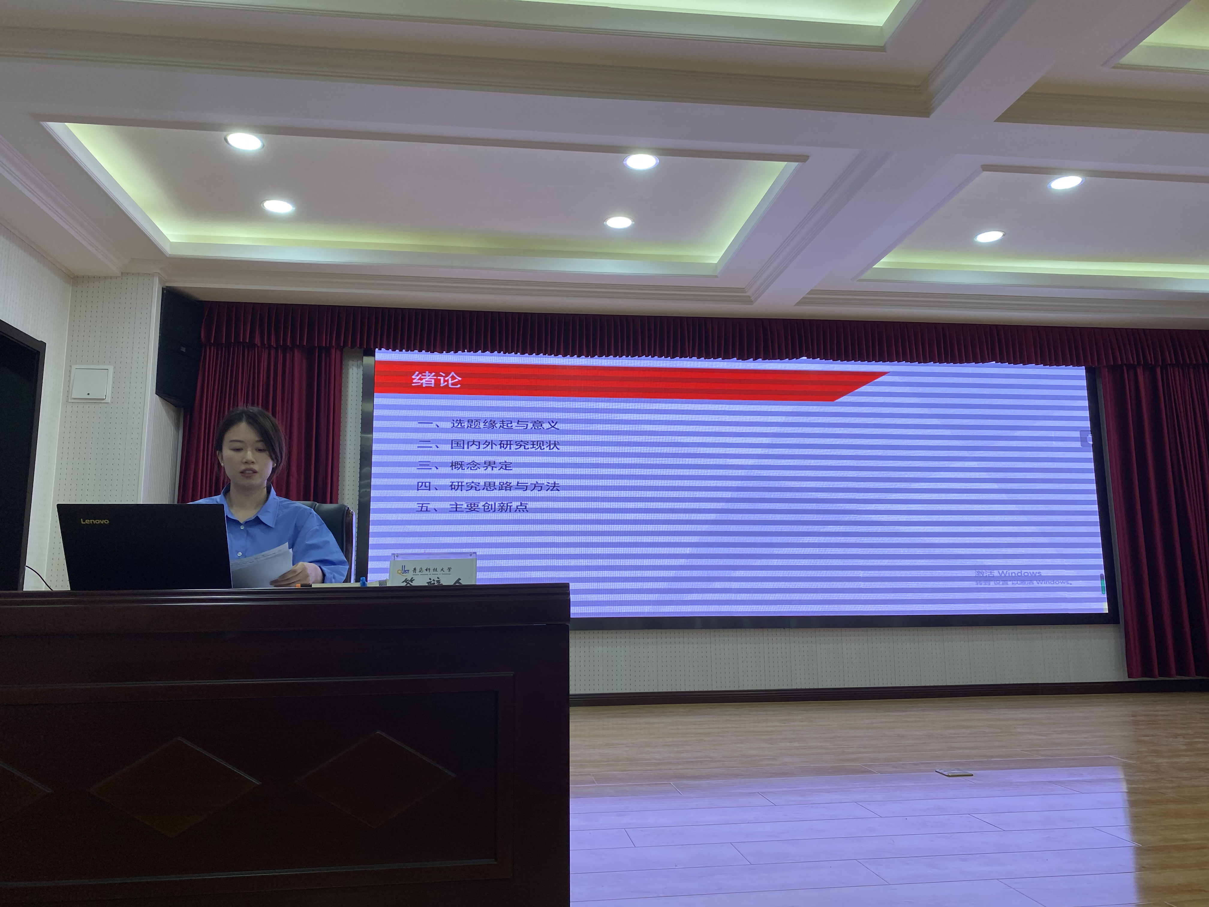马克思主义基本原理、马克思主义中国化研究方向的答辩会在学术报告厅举行。答辩委员会主席逄奉辉教授介绍了答辩委员会成员和答辩流程。参加论文答辩的研究生付鑫鑫、井震、刘宝鲁、柳逊、刘佳馨、綦彩莉、孙璐、徐圣权、徐一鸣、赵新建分别汇报了自己的论文写作思路及研究方法、创新点等。各位专家针对员工的论文提出了修改意见及相关问题,涉及论文的基本格式、具体内容和学术规范等。随后答辩员工回答了各位专家和老师的问题。