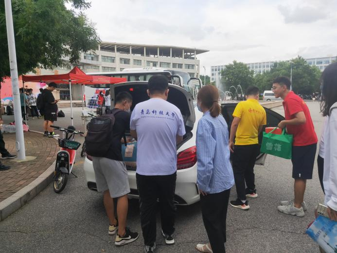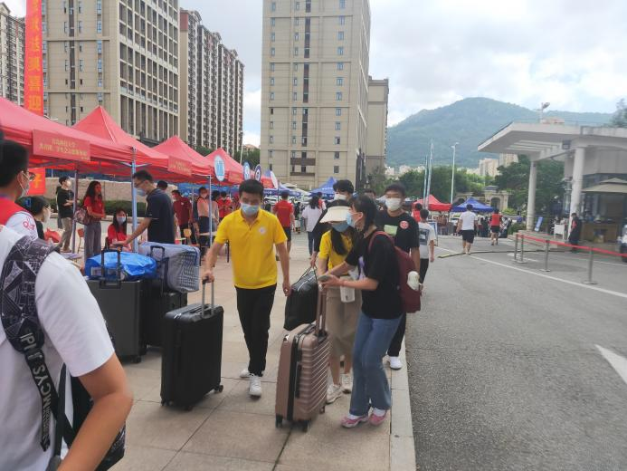 9月3日清晨,新生报到工作正式开始,公司在东门设有固定迎新点安排志愿者值守,接待入校新生。新生在完成身份核验后依次上交入学材料,迎新志愿者承担起引导新生入校办理宿舍入住手续和帮助新生搬运行李的工作。在老师和志愿者的帮助下每位新生都顺利入校、办理入住手续。