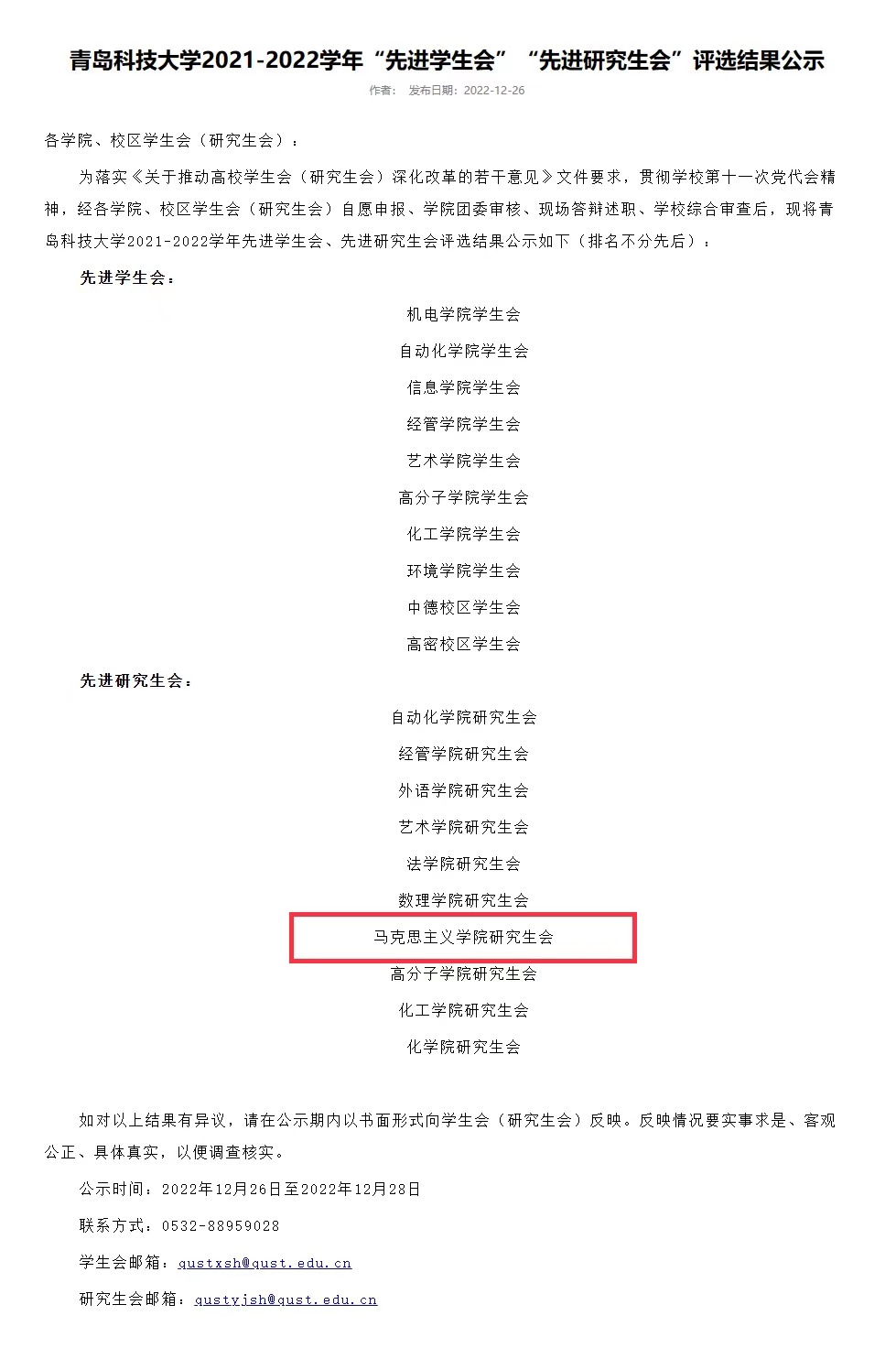 近日,公司对2021-2022学年“先进研究生会”评选结果进行公示,bevictor伟德官网研究生会荣获2021-2022学年“先进研究生会”荣誉称号。