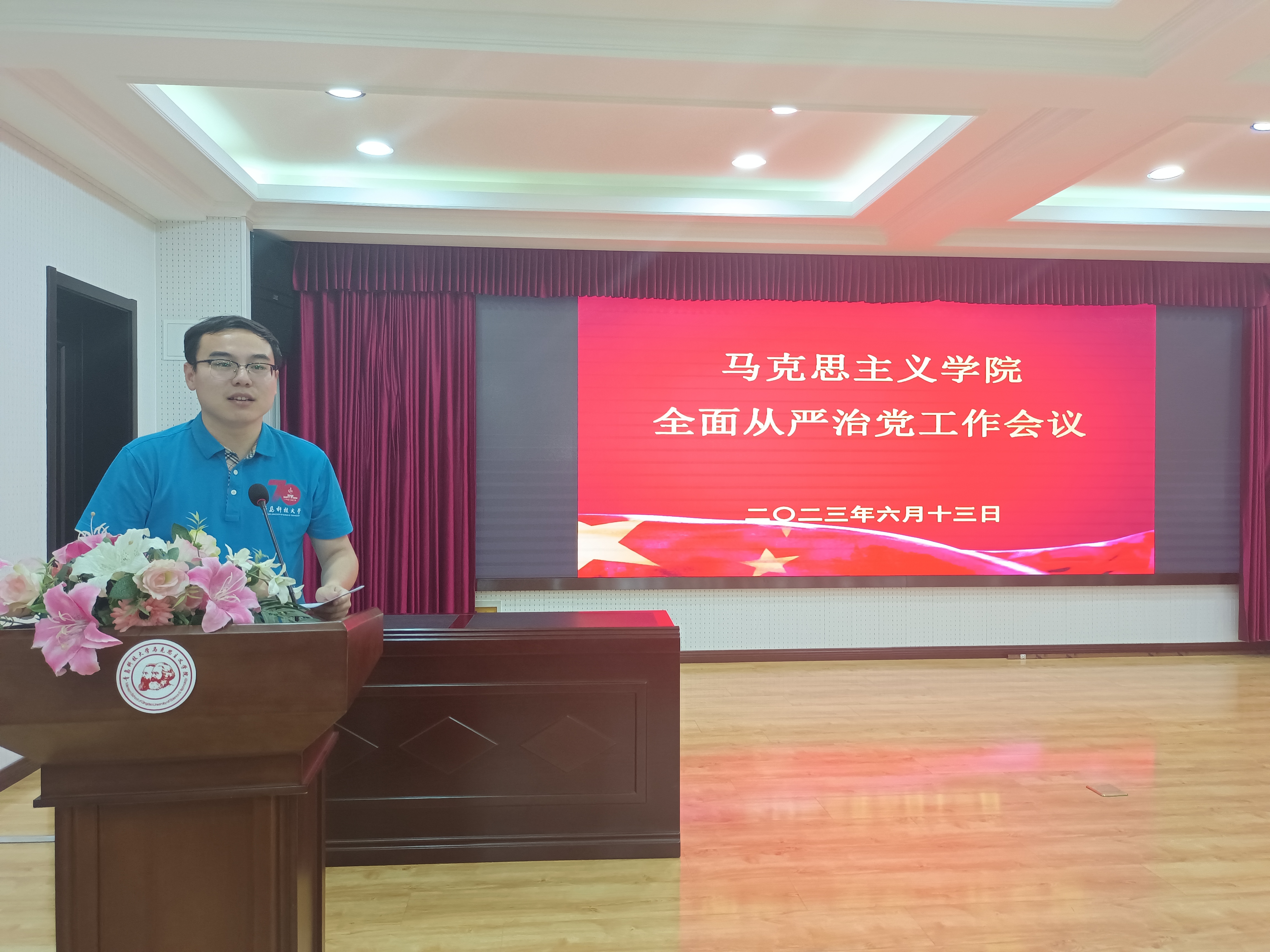 曹胜首先传达了2023年全面从严治党工作会议精神和工作要求:一是以政治建设为统领,实现从严治党内容全涵盖。二是以关键少数为重点,促进对象全覆盖。三是以四责协同为关键,夯实从严治党责任全链条。四是以制约监督为基础,推动从严治党制度全贯通。随后,曹胜领学了习近平总书记关于党的自我革命的重要论述,进一步强调共产党员要坚持“平常时候看得出来、关键时刻站得出来、危难关头豁得出来”,永葆对党忠诚的政治品格。