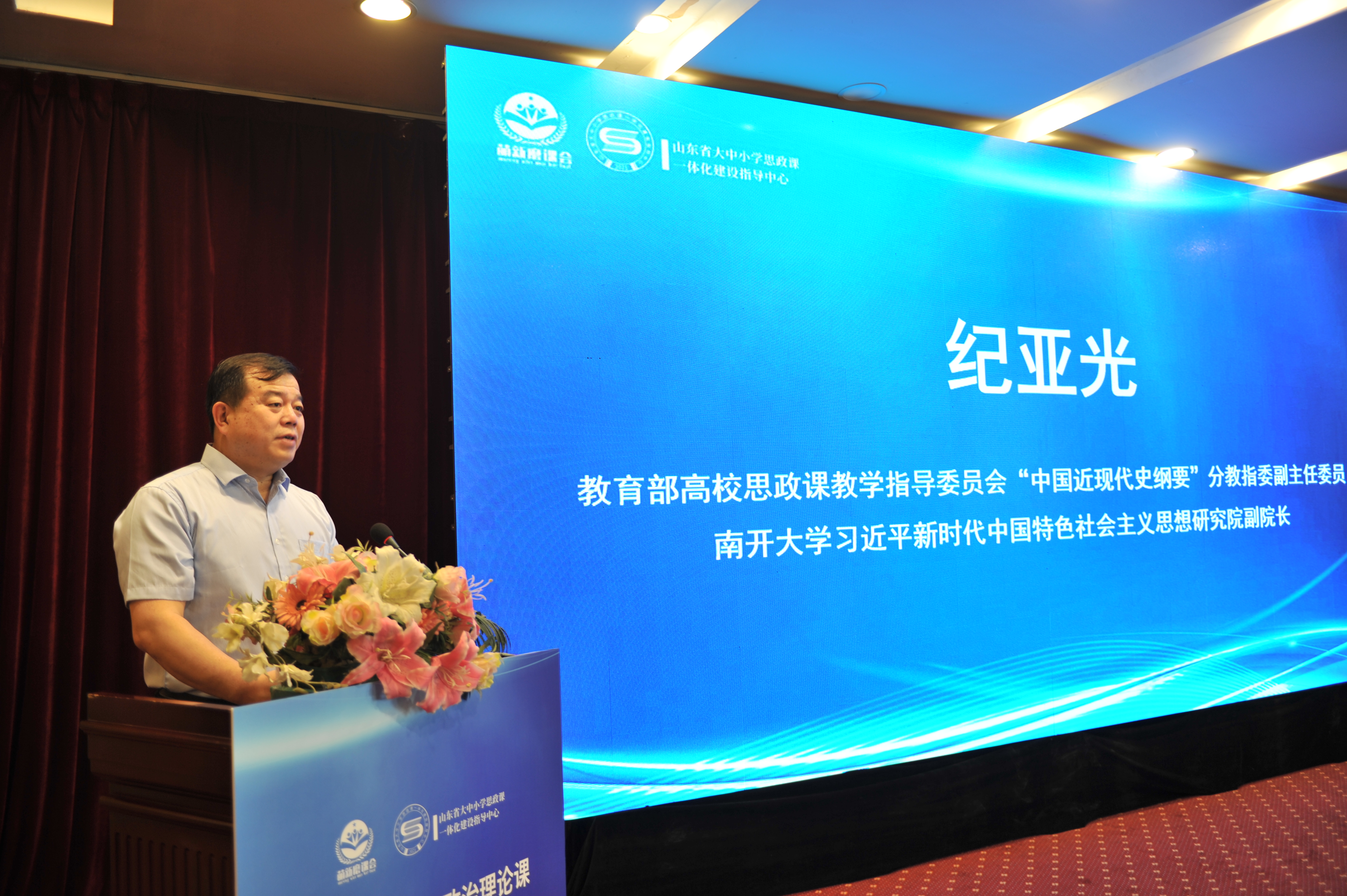 纪亚光代表教育部思政课教指委“中国近现代史纲要”分教指委对活动的举办表示热烈祝贺。他强调,山东省的广大青年思政课教师要认真学习、自觉践行习近平总书记在公司思政课教师座谈会上的重要讲话精神,以德立身、以德立学、以德施教、以德育德,争做马克思主义坚定信仰者、忠实实践者和积极传播者,把好“政治关”,把好“教学观”,把好“素质关”,扎扎实实,脚踏实地把教学搞好,把道理讲深、讲透、讲活,让员工真心喜爱、终身受益、毕生难忘。