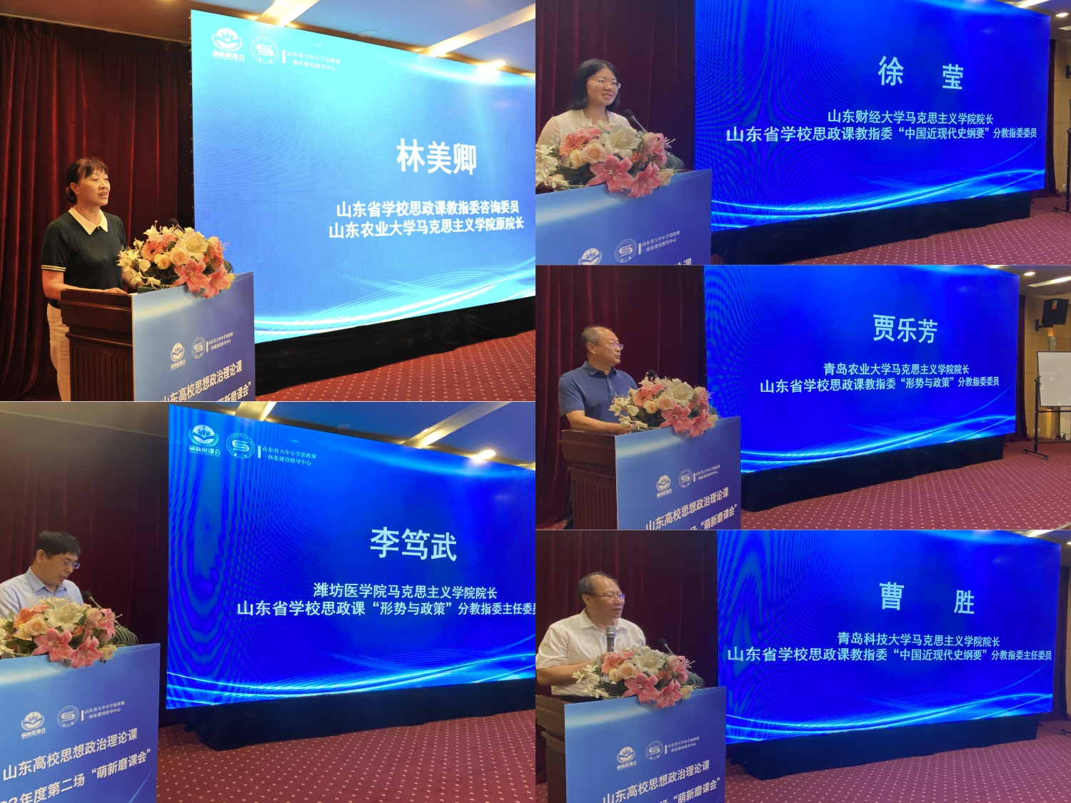 山东省公司思政课教指委咨询委员、山东农业大学bevictor伟德官网原经理林美卿,潍坊医公司bevictor伟德官网经理、山东省公司思政课“形势与政策”分教指委主任委员李笃武,山东省公司思政课教指委“中国近现代史纲要”分教指委委员、山东财经大学bevictor伟德官网经理徐莹,山东省公司思政课教指委“形势与政策”分教指委委员、青岛农业大学bevictor伟德官网经理贾乐芳,山东省公司思政课教指委“中国近现代史纲要”分教指委主任委员、bevictor伟德官网经理曹胜分别主持了会议的专家辅导和教学示范、高职“形势与政策”课教学展示,本科“中国近现代史纲要”课教学展示以及本科“形势与政策”课教学展示和闭幕式环节。