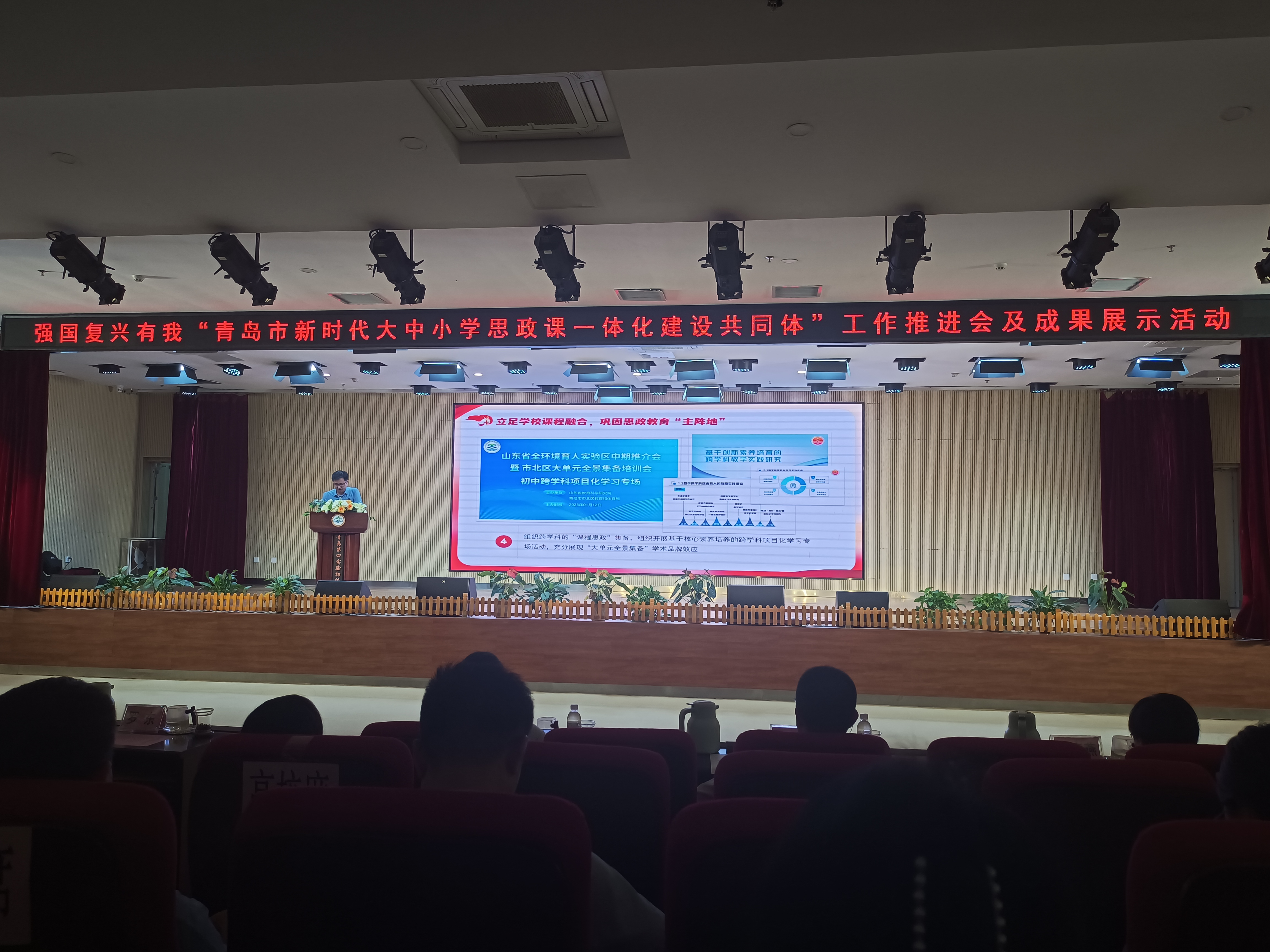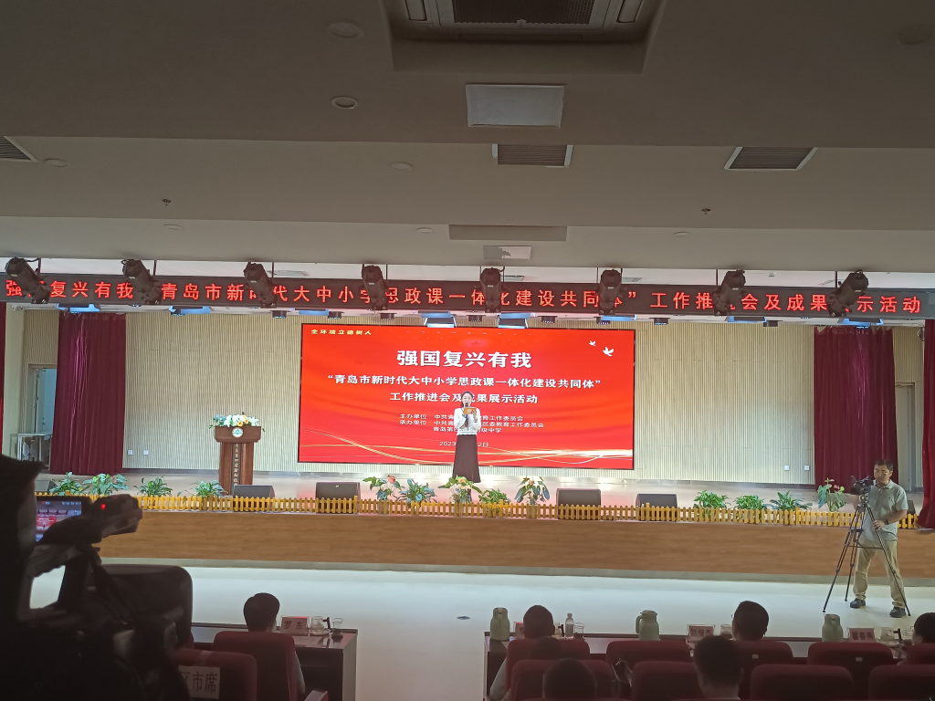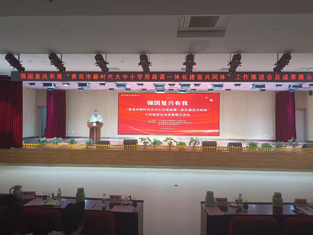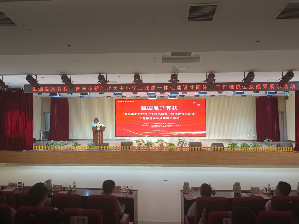 为扎实推进青岛市大中小学思政课一体化建设,全方位多视角展示各“共同体”在课题研究、公司产品、实践活动和师生交流等方面的建设成果,9月22日下午,由中共青岛市委教育工作委员会主办,中共青岛市市北区委教育工作委员会与青岛第四实验初级中学承办的强国复兴有我“青岛市新时代大中小学思政课一体化建设共同体”工作推进会及成果展示活动在青岛第四实验初级中学举行。市委教育工委(市教育局)领导及相关处室负责人,各区、市党委教育工委(教体局)分管领导及相关科室负责人以及在青高校bevictor伟德官网经理(思政部)分管领导等参加此次活动。