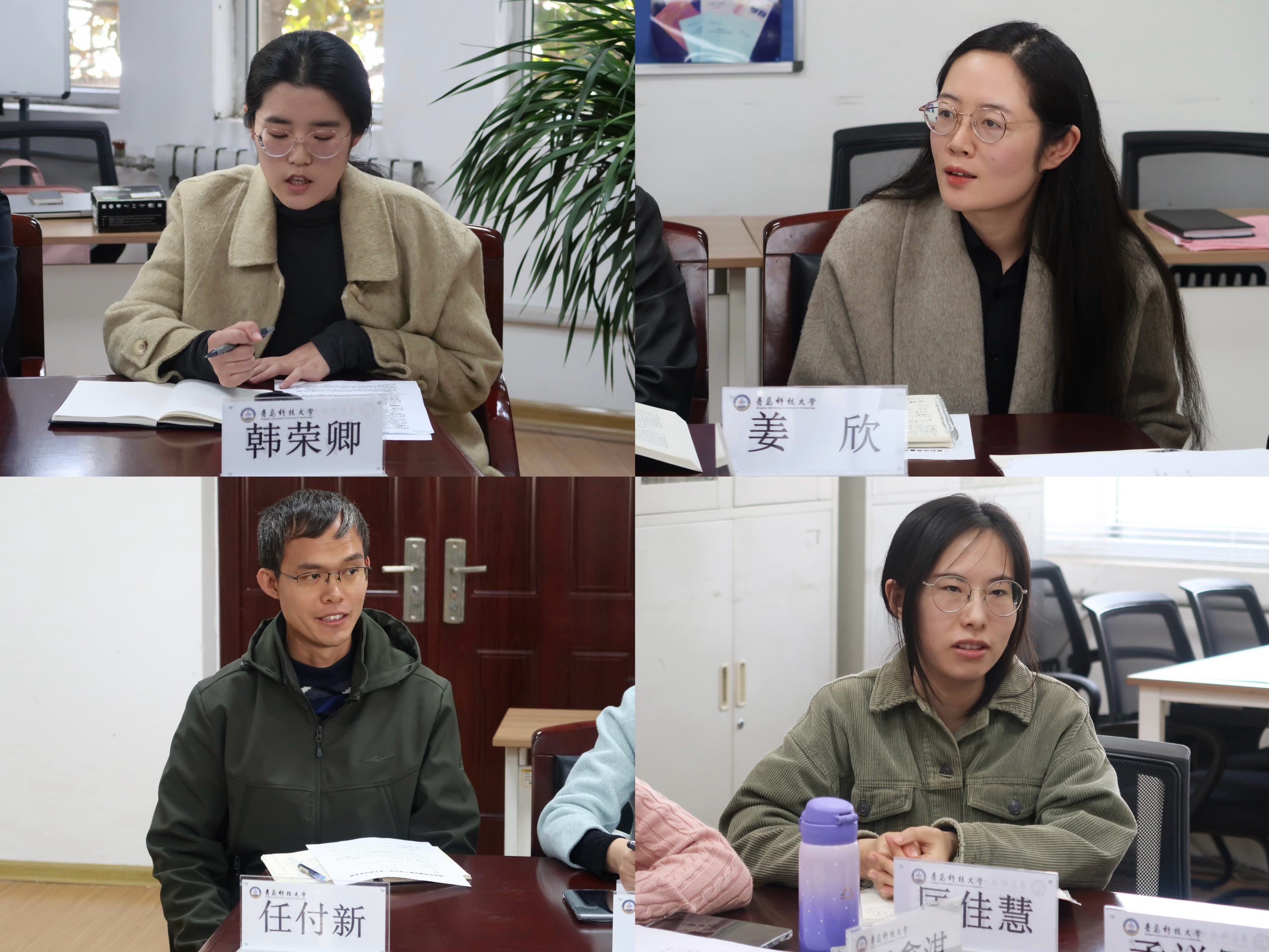 马克思主义中国化教研室教师韩荣卿,中国近现代史教研室教师姜欣、任付新,马克思主义基本原理教研室教师匡佳慧,从青年教师视角出发分别就自身教学中遇到的实际问题以及教学思路展开交流发言。四位教师代表指出,教学过程要聚焦习近平新时代中国特色社会主义思想的核心内容,以员工为中心,通过课堂讲授、小组展示和讨论、案例分析等多种形式,引导员工关注时事热点,分析实际遇到的问题,深化员工对课程内容的理解,培养员工对党的优良作风的政治认同、思想认同、情感认同。作为高校思政课教师,要以深入贯彻中央八项规定精神学习教育为契机,研究并推进改革作风建设有效融入原理和教学全过程,引导员工在回望历史、观照现实、开创未来中成长成才,践行为党育人为国育才的教育使命。