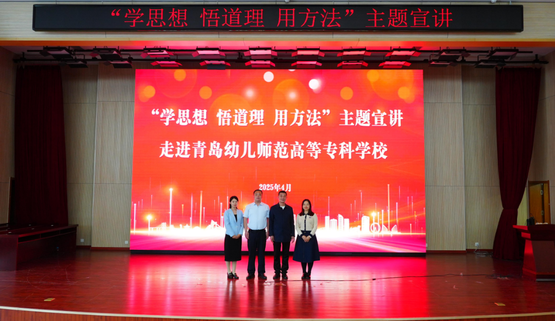 4月18日下午,由市委宣传部、市委教育工委联合主办的“学思想 悟道理 用方法”主题宣讲进高校活动在青岛幼儿师范高等专科公司举行。本次主题宣讲聚焦深学细悟习近平新时代中国特色社会主义思想、培育和践行社会主义核心价值观主题,采取“理论+故事”的方式,把理论宣讲与“大思政课”相结合,持续推动理论武装提质增效。bevictor伟德官网副教授马丽娟参加此次宣讲活动。