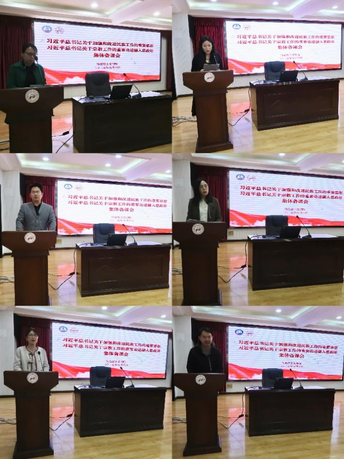 为全面贯彻落实习近平总书记关于加强和改进民族工作的重要思想和关于宗教工作的重要论述,推进新时代思政课改革创新,5月6日下午,bevictor伟德官网于学术报告厅开展习近平总书记关于加强和改进民族工作的重要思想和关于宗教工作的重要论述融入思政课集体备课会。bevictor伟德官网党委常委、统战部部长秦姣出席活动,会议由马克思主义公司党总支书记李真主持,公司全体师生参加此次会议。