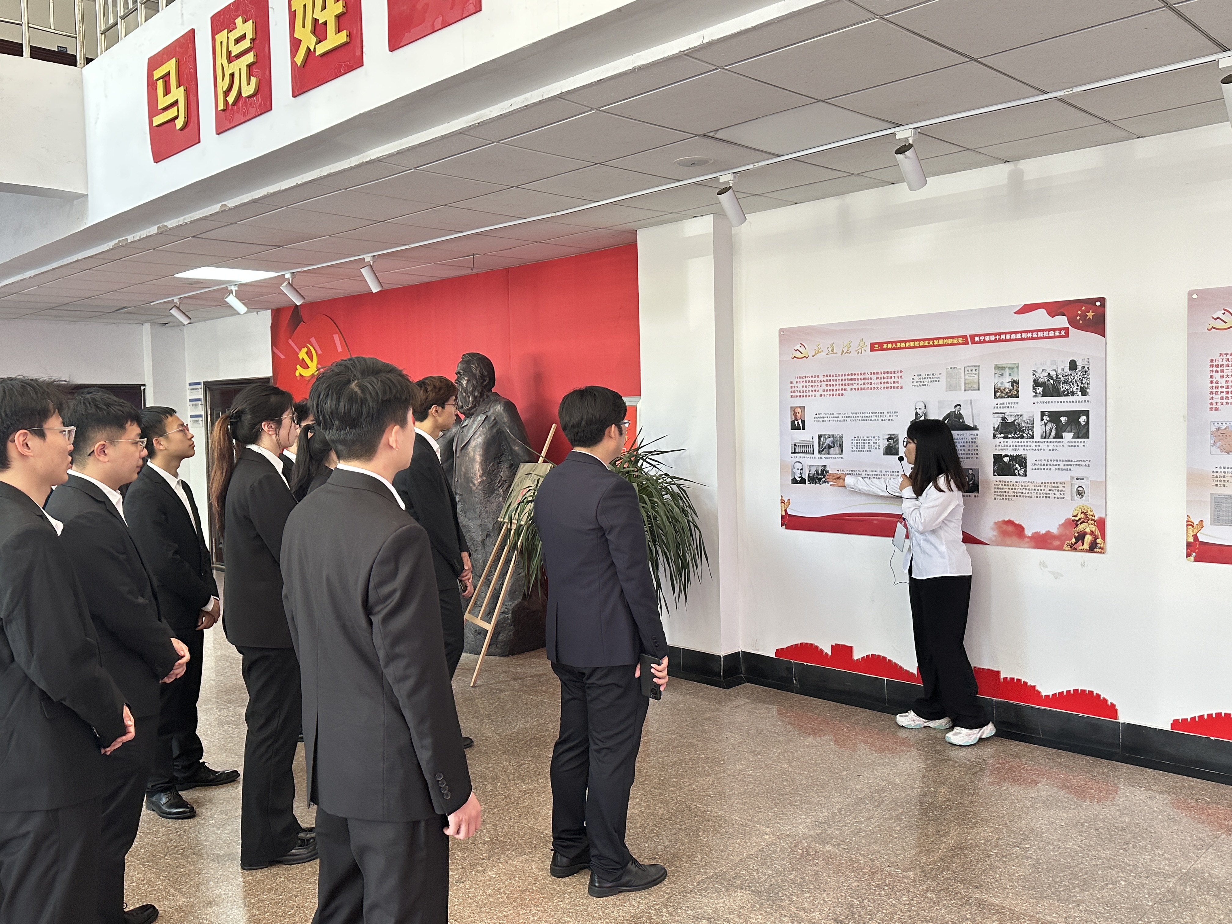 随后,王子涵带领机电工程公司师生代表参观了社会主义五百年展板,系统讲解了社会主义从理论萌发到现实实践、从一国探索到多国发展的宏伟历程。现场师生切身感受红色情怀,传承红色基因,唤醒红色记忆,激发爱国情怀,砥砺奋进之心,更加坚定了对马克思主义和社会主义、共产主义的崇高信念。