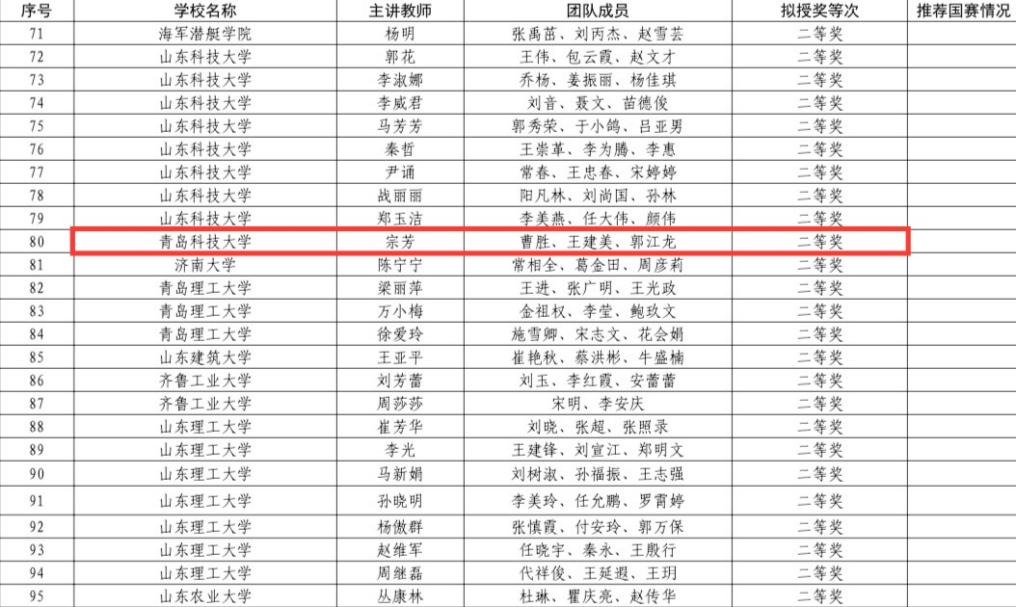 近日,山东省教育厅公布了“2025年度山东省普通高等公司教师教学创新大赛”拟授奖名单,bevictor伟德官网荣获“2025年度山东省普通高等公司教师教学创新大赛优秀组织奖”,bevictor伟德官网教师团队宗芳、曹胜、王建美、郭江龙荣获二等奖。