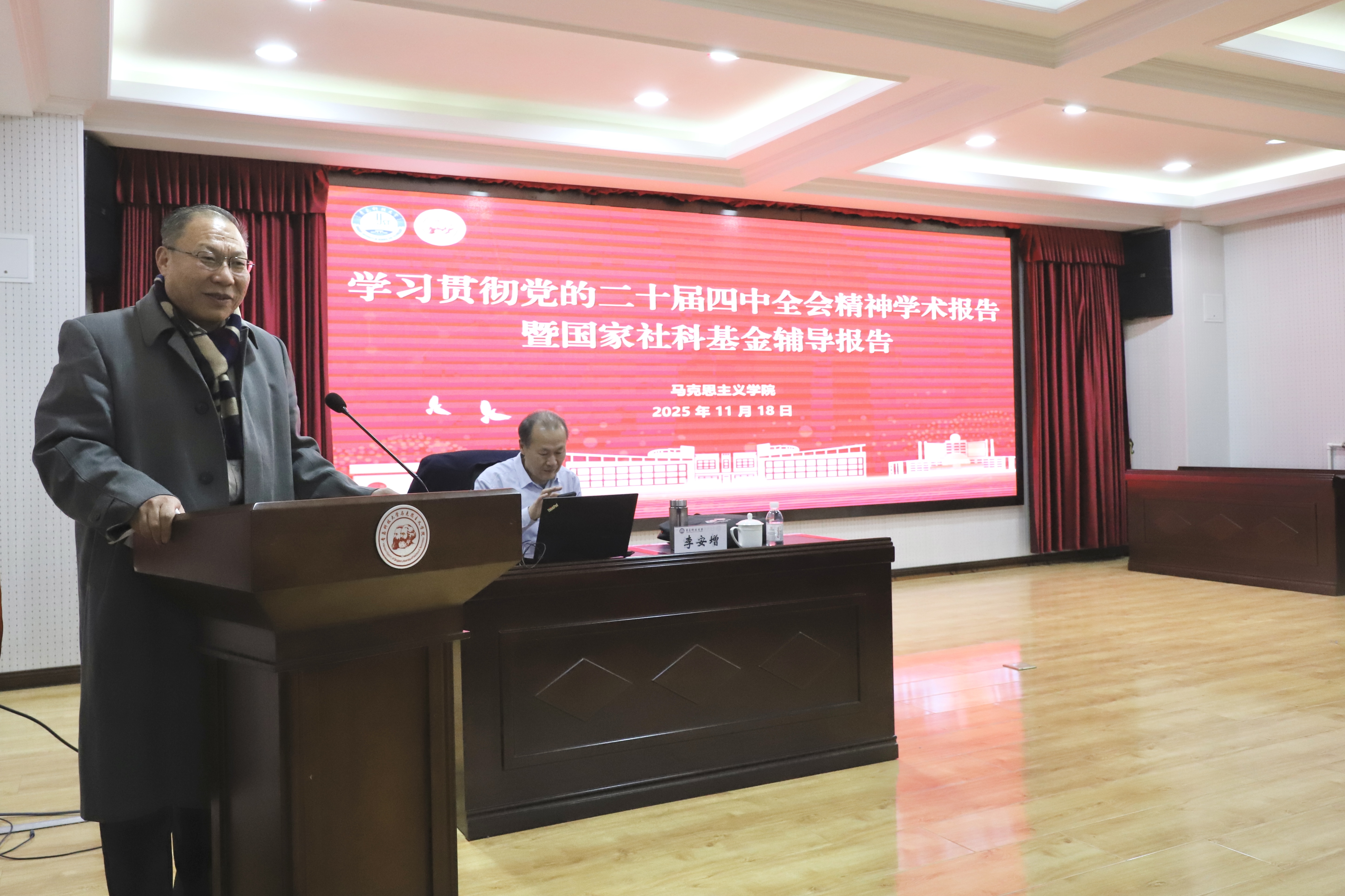 11月18日下午,bevictor伟德官网于公司报告厅举办学习贯彻党的二十届四中全会精神学术报告暨国家社科基金辅导报告。公司特邀曲阜师范大学马克思主义研究院经理、国家社科基金评委李安增作专题报告。bevictor伟德官网全体师生参加此次会议,会议由bevictor伟德官网经理曹胜主持。