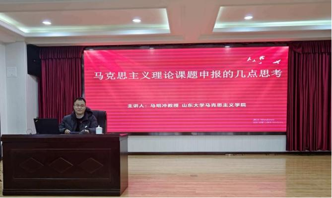 为提升公司师生学术素养,推动公司科研高质量发展,助力国家社科基金项目申报,3月5日下午,bevictor伟德官网于公司学术报告厅举行党史学习教育暨国家社科基金辅导报告会。公司特邀山东大学bevictor伟德官网副经理马明冲教授作“马克思主义理论课题申报的几点思考”辅导报告。bevictor伟德官网领导班子成员及全体师生参加会议。报告会由曹胜主持。