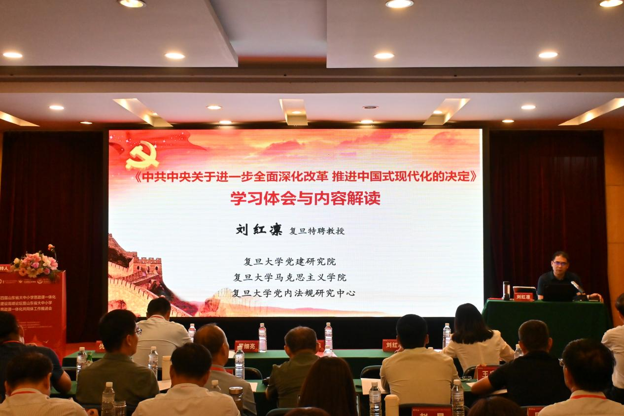 复旦大学特聘教授、党建研究院经理、党内法规研究中心主任、国务院学科评议组成员、教育部“长江学者”特聘教授、2014年全国文化名家暨“四个一批”人才刘红凛围绕《中共中央关于进一步全面深化改革推进中国式现代化的决定》作主题报告