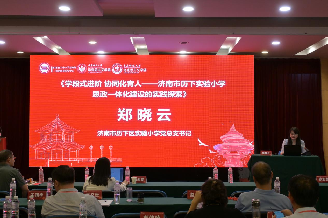 济南市历下区实验小学党总支书记郑晓云以《学段式进阶协同式发展——济南市历下实验小学思政一体化建设的实践探索》为题发言