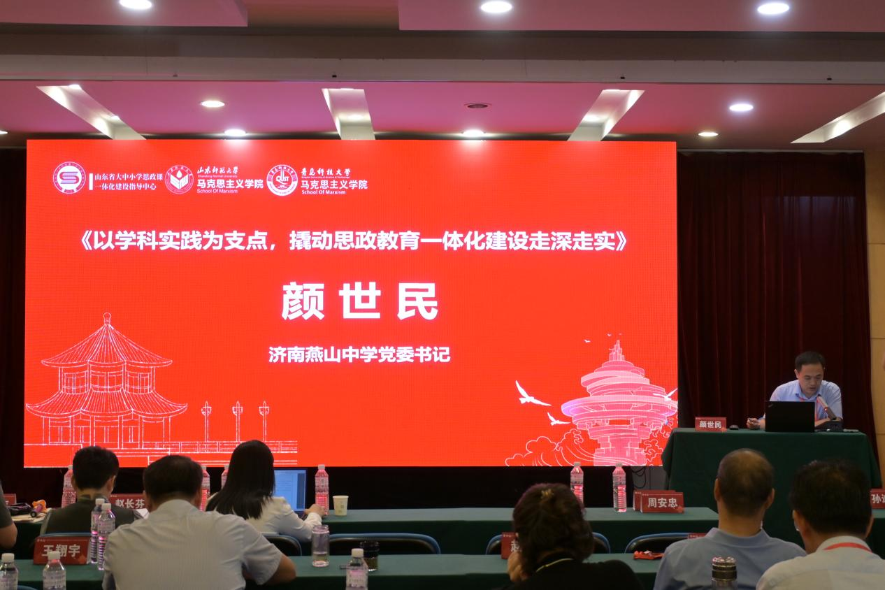 济南燕山中学党委书记颜世民以《以学科实践为支点,撬动思政教育一体化建设走深走实》为题发言