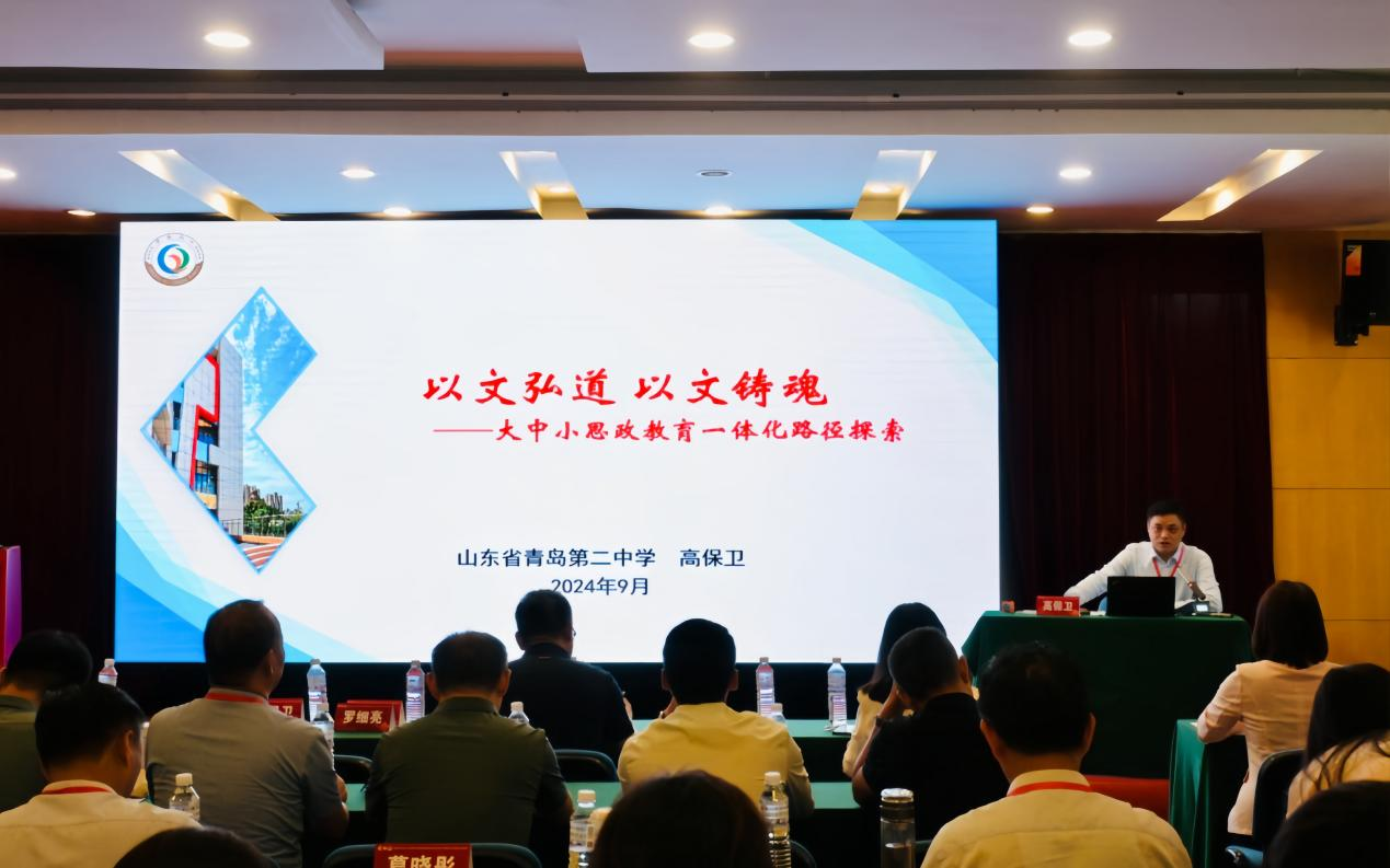 教育部大中小学思政课一体化建设专家指导组成员、青岛二中思政课特级教师、正高级教师、全国思想政治理论课座谈会参会代表、国家级教学名师、全国优秀教师代表座谈会代表、全国模范教师、全国中小学优秀德育工作者、首批齐鲁教育名家、山东省特级教师、齐鲁名师、山东省公司思政课教师年度人物高保卫围绕《以文弘道以文铸魂——大中小思政化教育实施路径的探索》作主题报告