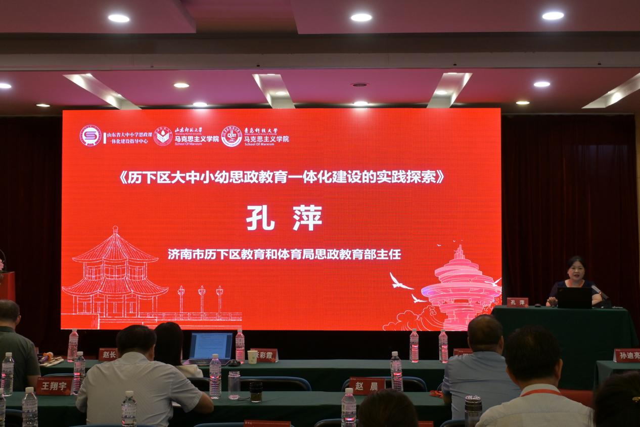 济南市历下区教育和体育局思政教育部主任孔萍以《历下区大中小幼思政教育一体化建设的实践探索》为题发言