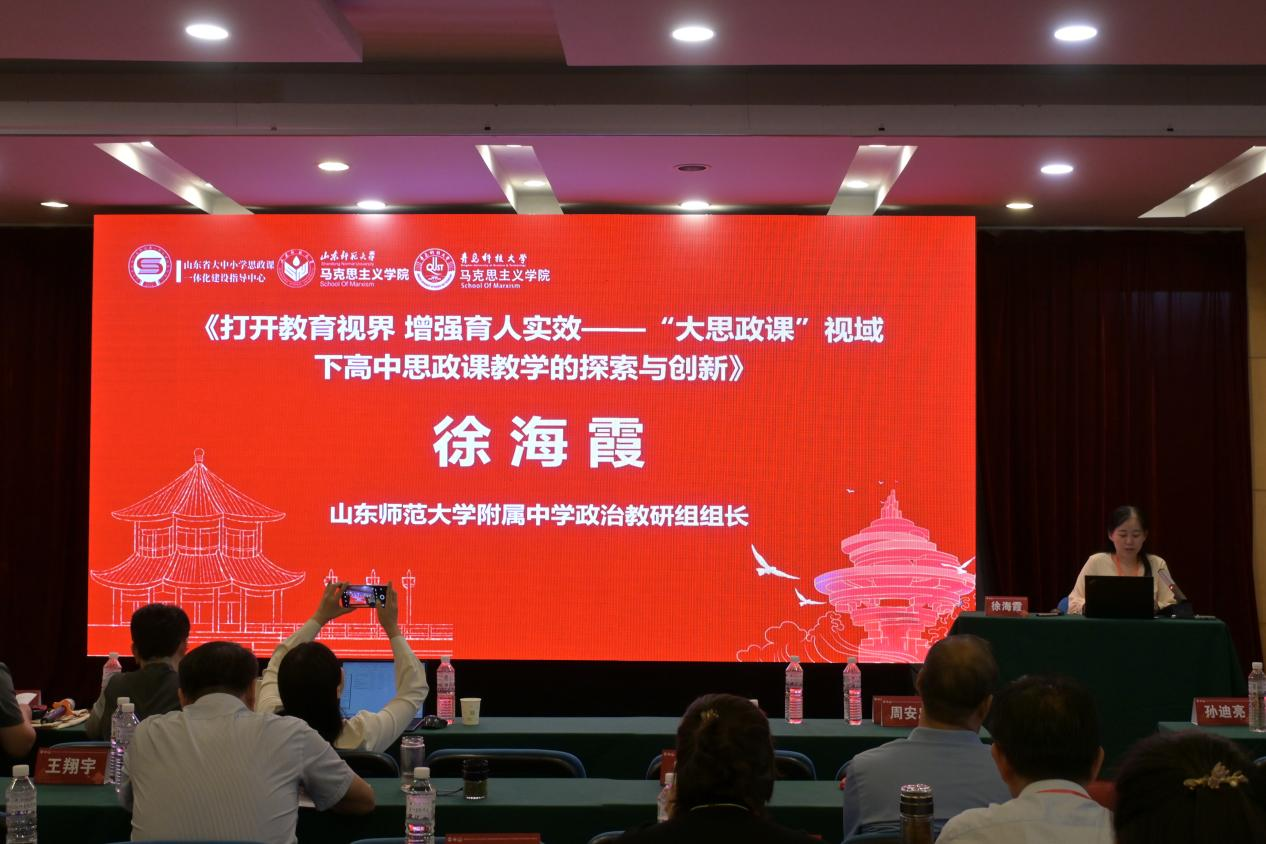 山东师范大学附属中学政治教研组组长徐海霞以《打开教育视界增强育人实效——“大思政课”视域下高中思政课教学的探索与创新》为题发言