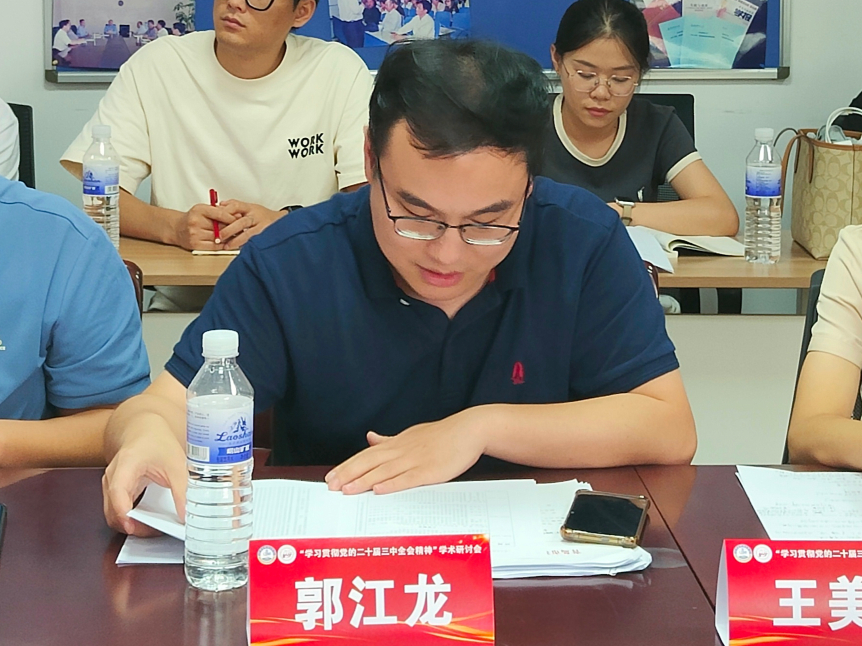为学习贯彻党的二十届三中全会精神,深入研讨全会精神的核心要义、丰富内涵和实践要求,8月10日,“学习贯彻党的二十届三中全会精神”学术研讨会暨团队建设论证会于公司召开。中国政治学会常务理事、青岛市政治学会会长、青岛市统战部原一级巡视员王振海,山东省公司思政课教指委“思想道德与法治”分教指委主任委员、中国石油大学(华东)bevictor伟德官网经理张瑞涛,bevictor伟德官网党委常委、宣传部部长张洪坤出席开幕式致辞。bevictor伟德官网党总支书记李真主持开幕式。