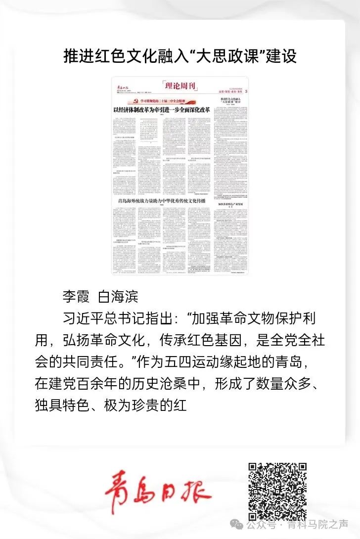 【成果速报】青岛日报:“李霞 白海滨——推动红色文化融入‘大思政课’建设”