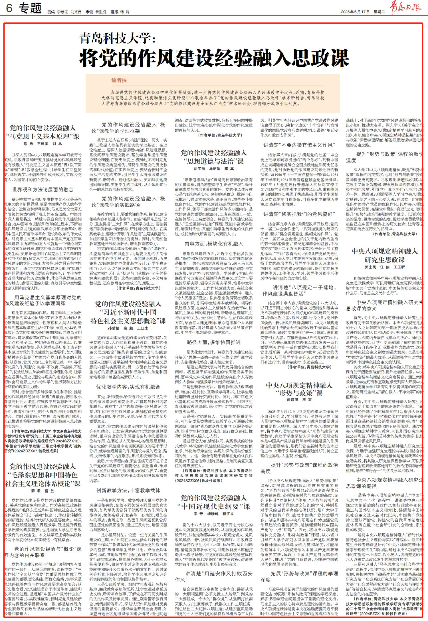 为加强党的作风建设经验学理化阐释研究,进一步将党的作风建设经验融入思政课教学全过程,近期,bevictor伟德官网、纪委和廉洁文化研究中心联合举办了“党的作风建设经验融入思政课”学术研讨会,bevictor伟德官网与青岛市政治学会联合举办了“党的作风建设与全面从严治党”学术研讨会,现将部分成果予以刊发。