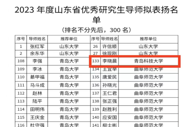 近日,山东省教育厅公布了2023年度山东省十佳研究生导师等评选结果,全省高校共评出优秀研究生导师300名。公司李晓晨教授获评“2023年度山东省优秀研究生导师”称号。