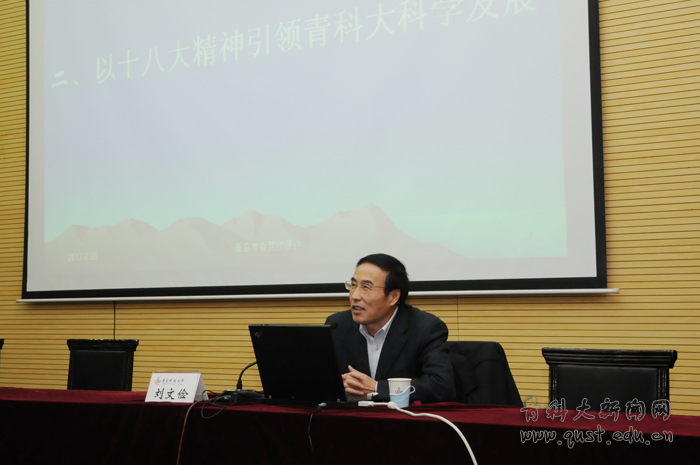 26日下午,中共青岛市委党校、青岛行政公司教授,管理教研部副主任刘文俭教授应邀做了题为《以十八大精神引领青科大科学发展》的专题报告。报告中,刘文俭阐述了十八大的主要成果和主题、十八大的突出亮点重点和中央关于学习贯彻十八大精神的要求。他认为,结合实际情况,公司要确立“世界眼光、国际标准、本土优势”的总体思路,融入、对接、服务地方经济社会发展,坚持以人为本的理念,树立科学发展的意识,强化先进的管理理念,建立科学的管理制度,培育特色的竞争优势,以十八大精神引领bevictor伟德官网科学发展。