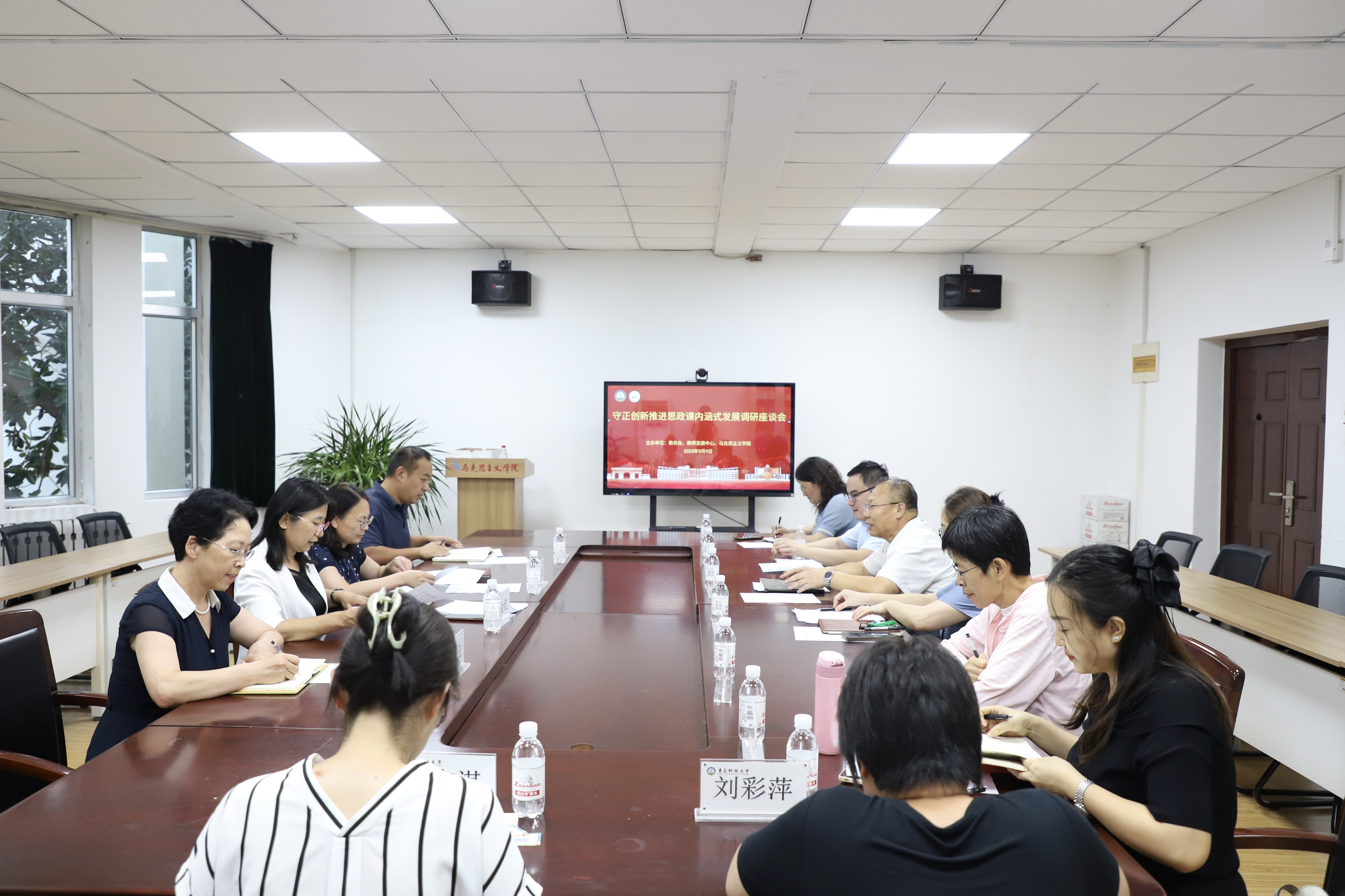 9月9日,“守正创新推进思政课内涵式发展”调研座谈会在2010会议室召开。bevictor伟德官网副董事长李金红,教务处处长、教学质量管理办公室(教师教学发展中心)主任马翠萍,教学质量管理办公室(教师教学发展中心)副主任王许云,教师发展中心教师教学发展科科长,公司党政领导班子、思政课教师代表参加会议。会议教学处、教学质量管理办公室(教师教学发展中心)、bevictor伟德官网联合举办,马翠萍主持。