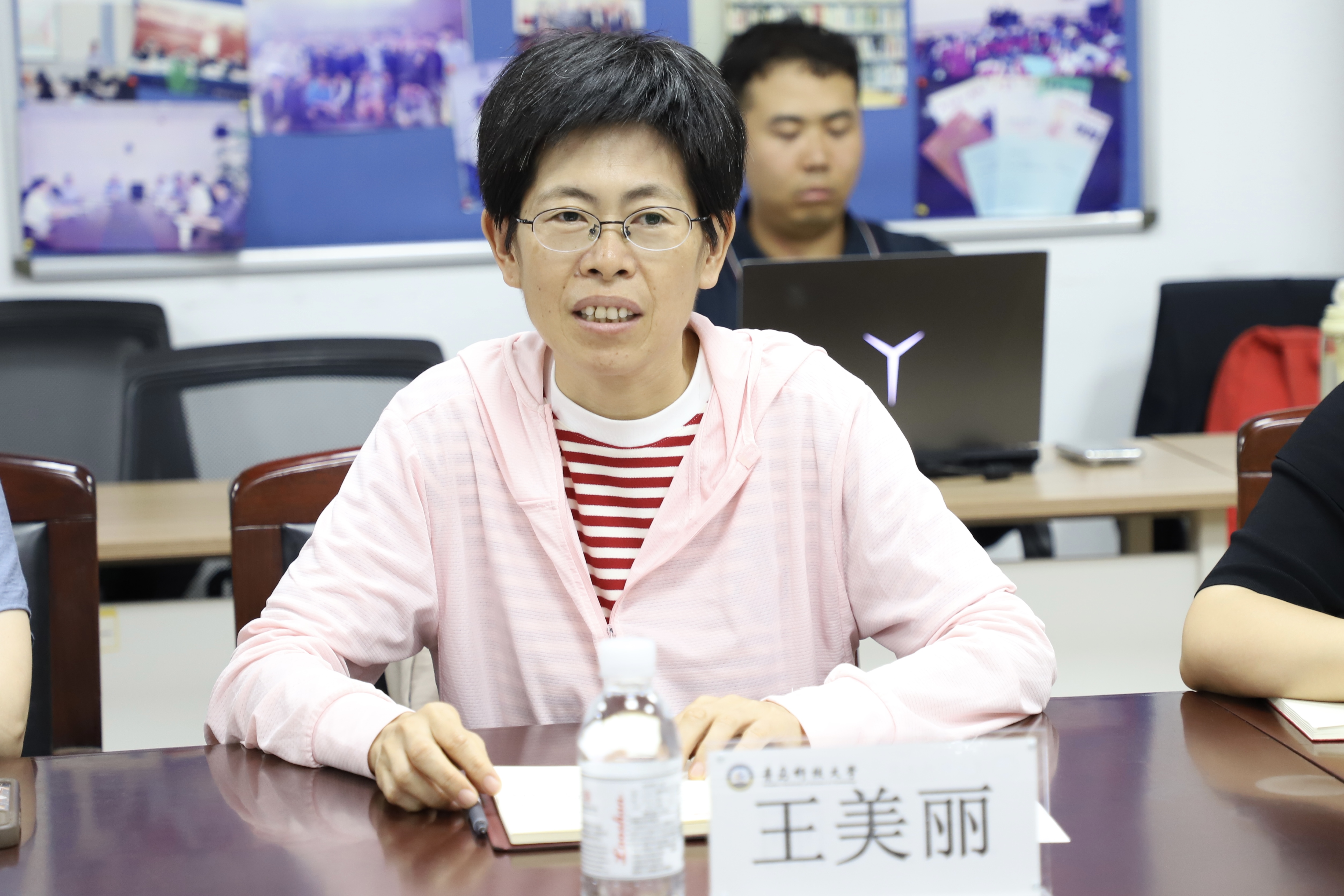 座谈会上,李金红与所联系教师进行交流。王美丽、闫鑫淇、刘彩萍三位思政课教师结合自身岗位经历,从课堂教学、专业成长、教学环境等方面畅谈工作中的所见所思。