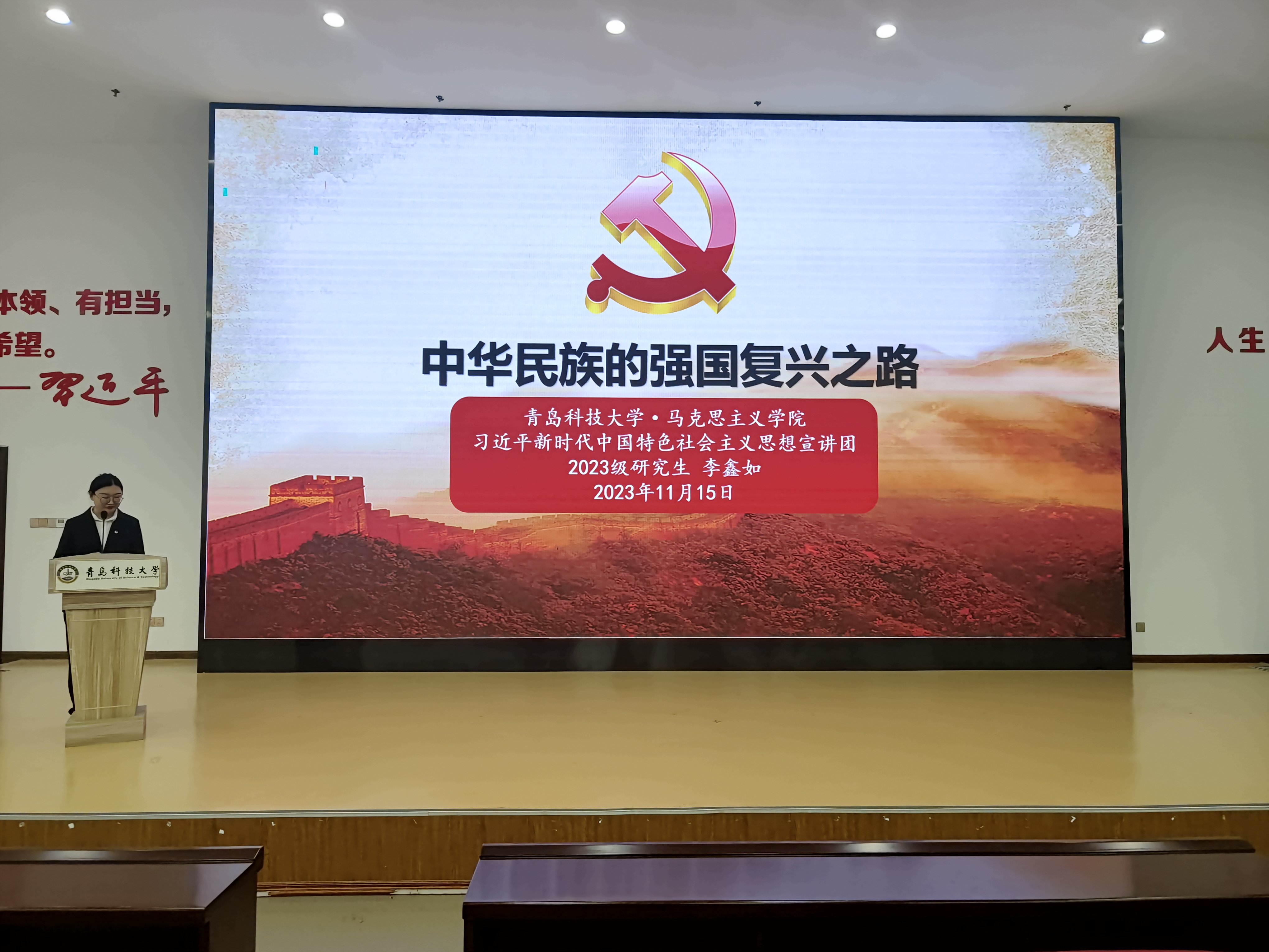 李鑫如以“中华民族的强国复兴之路”为主题,通过讲述一百多年来中国共产党的奋斗史与中国式现代化的内涵,呼吁大家要在中国共产党的领导下,在全面建设社会主义现代化国家新征程中,努力成为堪当民族复兴重任的时代新人。