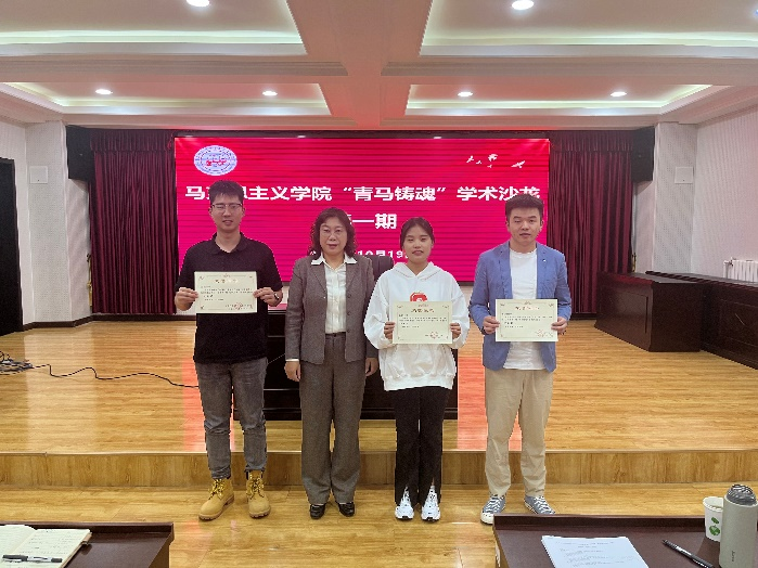 活动伊始,杨志国、姜震、史超月三位同学分别就自己的论文选题、论文框架以及研究思路等方面的内容进行阐述,向大家展示了他们的研究成果以及对相关领域的深入思考。随后,同学们就汇报内容提出问题并发表自己的观点。讨论发言结束后,李晓晨老师针对三位同学的汇报分享,从论文选题的恰当性、学术研究的创新性、资料搜集的准确性等方面展开了详细评析并提出修改意见。最后,李晓晨老师为三位同学颁发证书,并鼓励大家要勤学善思充分发掘自身潜能,不断追逐学术理想。