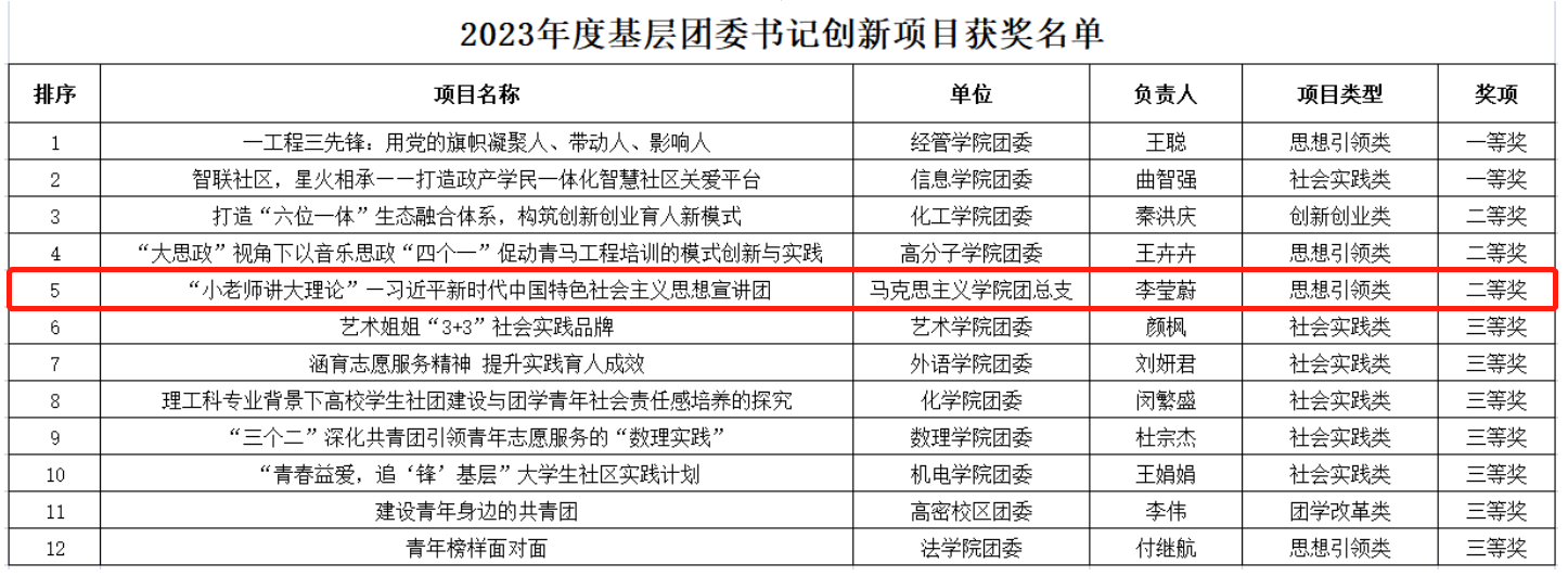 2023年度基层团委书记创新项目是展示基层团委创新能力与专业素质的平台。本次获奖充分展现了bevictor伟德官网优良的创新素养和扎实的学科基础。bevictor伟德官网将以此次获奖为契机,坚持立德树人的根本任务,立足学科特色,继续发挥青年宣讲在思想政治中的引领作用,团结带领广大青年在实现中国式现代化的征程中奋勇前进,贡献青春力量。