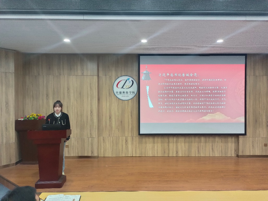 张笑笑以党的二十大报告主题为切入点,带领大家学习了中国特色社会主义伟大旗帜、伟大建党精神等方面的内容。大会主题是大会精神的集中体现,是大会报告的灵魂和主旨。领会好大会主题的丰富内涵,对于全面准确领会大会精神特别是报告的精神大有裨益。作为新时代青年应坚定理想信念,砥砺奋进之力,应矢志艰苦奋斗,锻造强筋壮骨,勇挑重担,扬帆远航。