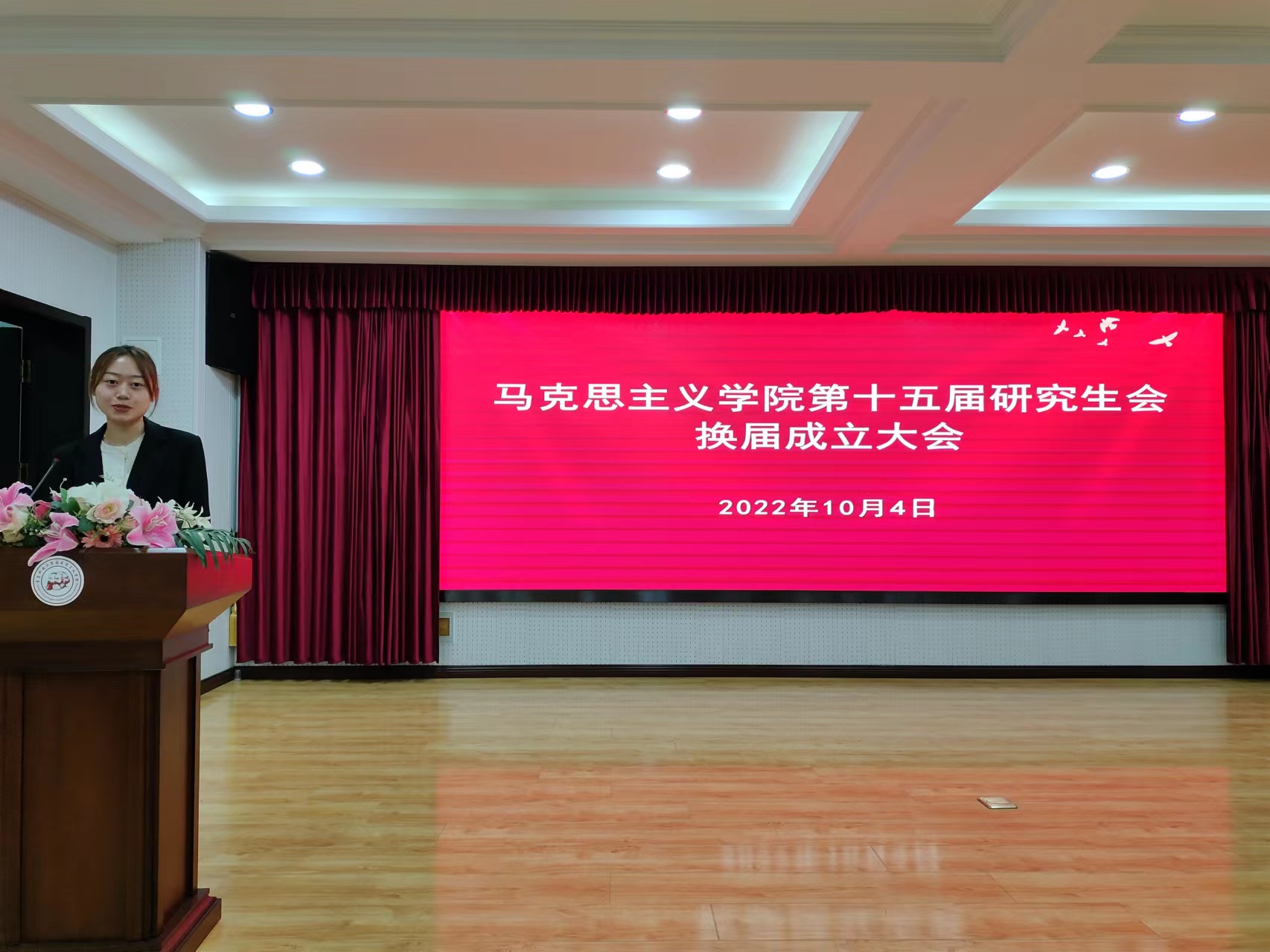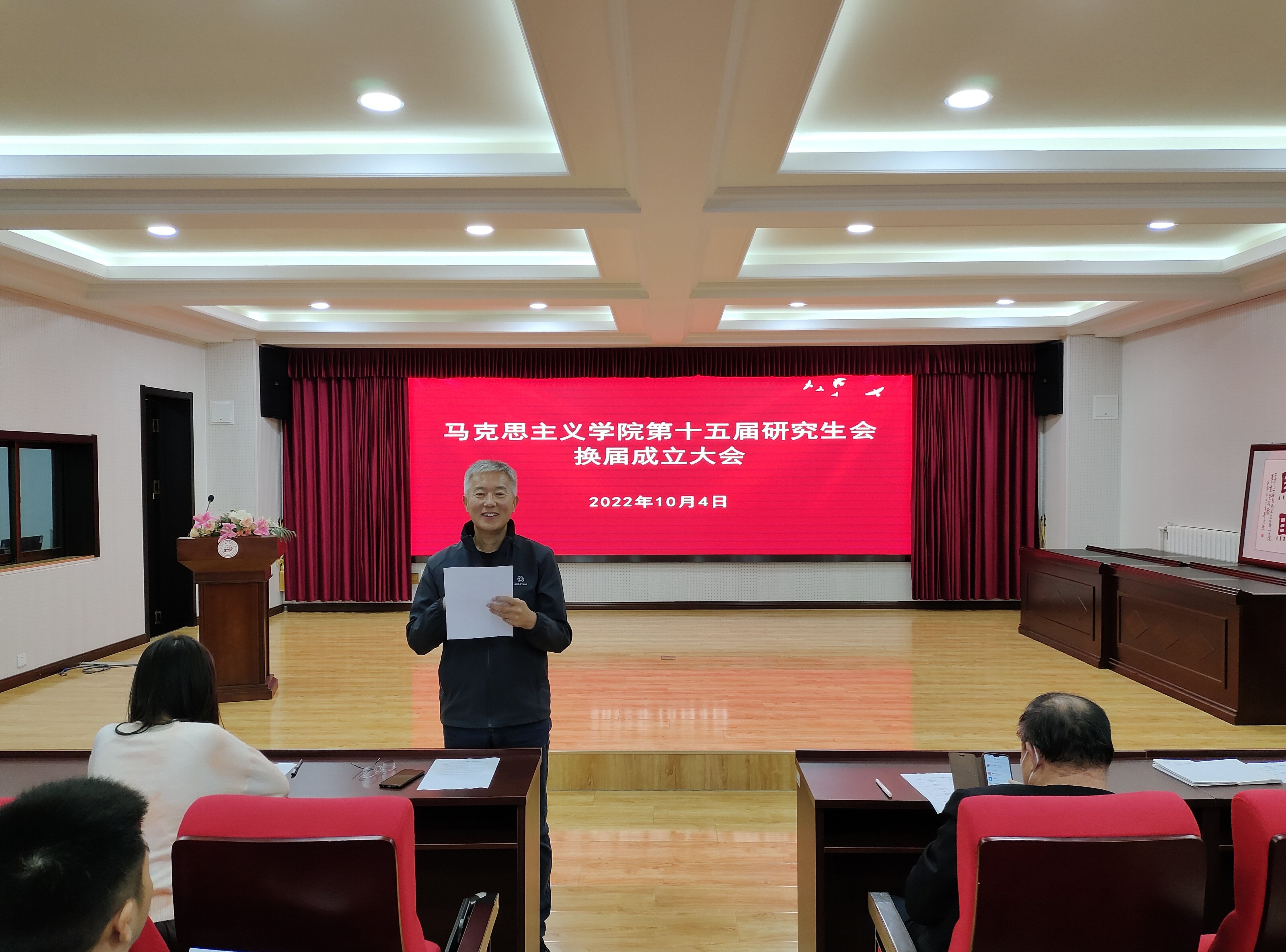 10月4日下午,bevictor伟德官网在公司报告厅举行第十五届研究生会换届成立大会。马克思主义公司党总支书记张鸣,经理兼党总支副书记曹胜,2022级班主任车舒雨,公司团总支书记李莹蔚,第十四届研究生会骨干成员、第十五届研究生会全体成员参加会议。本次会议由2022级研究生李婷婷主持。