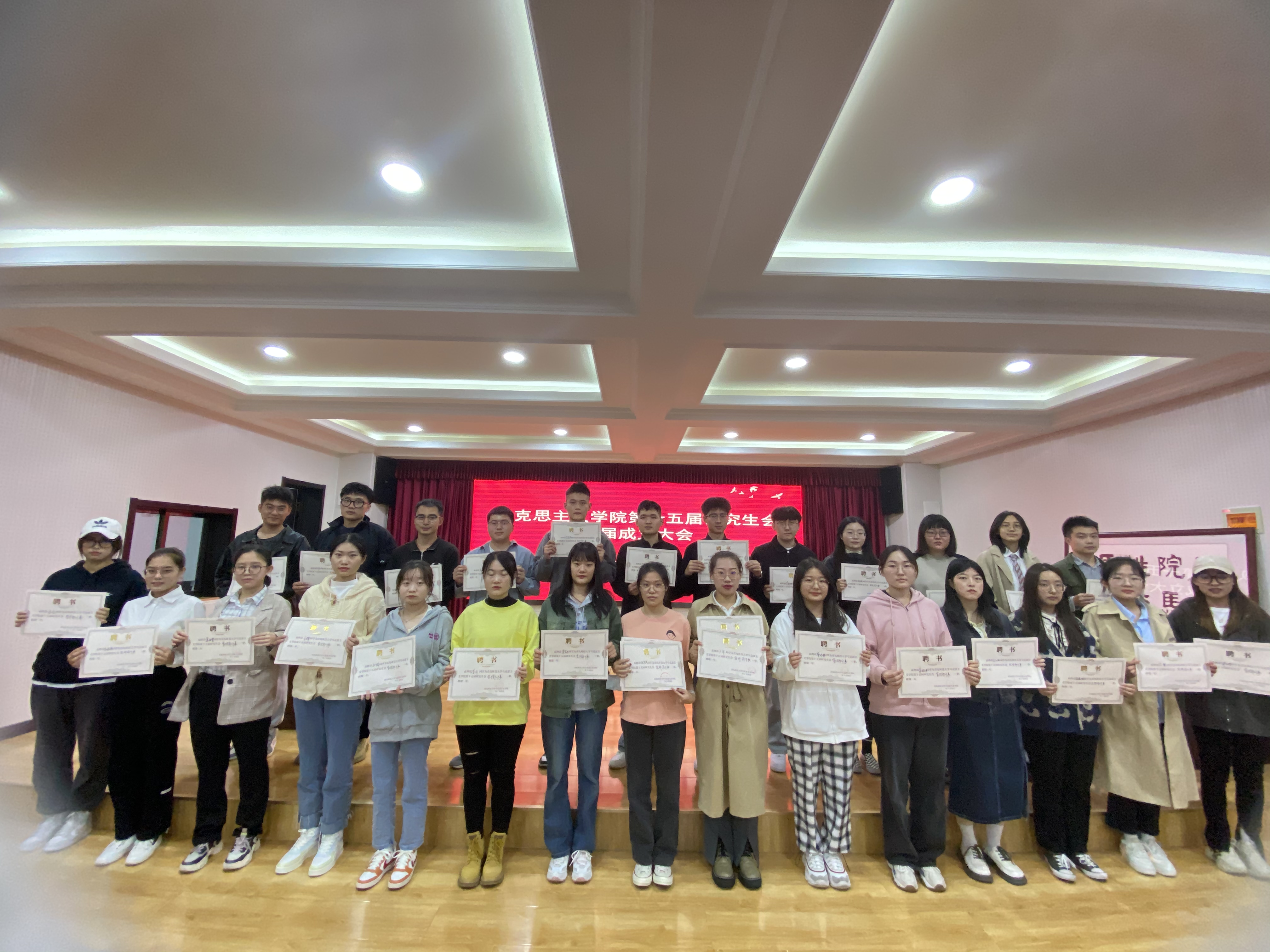 马克思主义公司党总支书记张鸣、经理曹胜为第十五届研究生会全体成员颁发聘书。