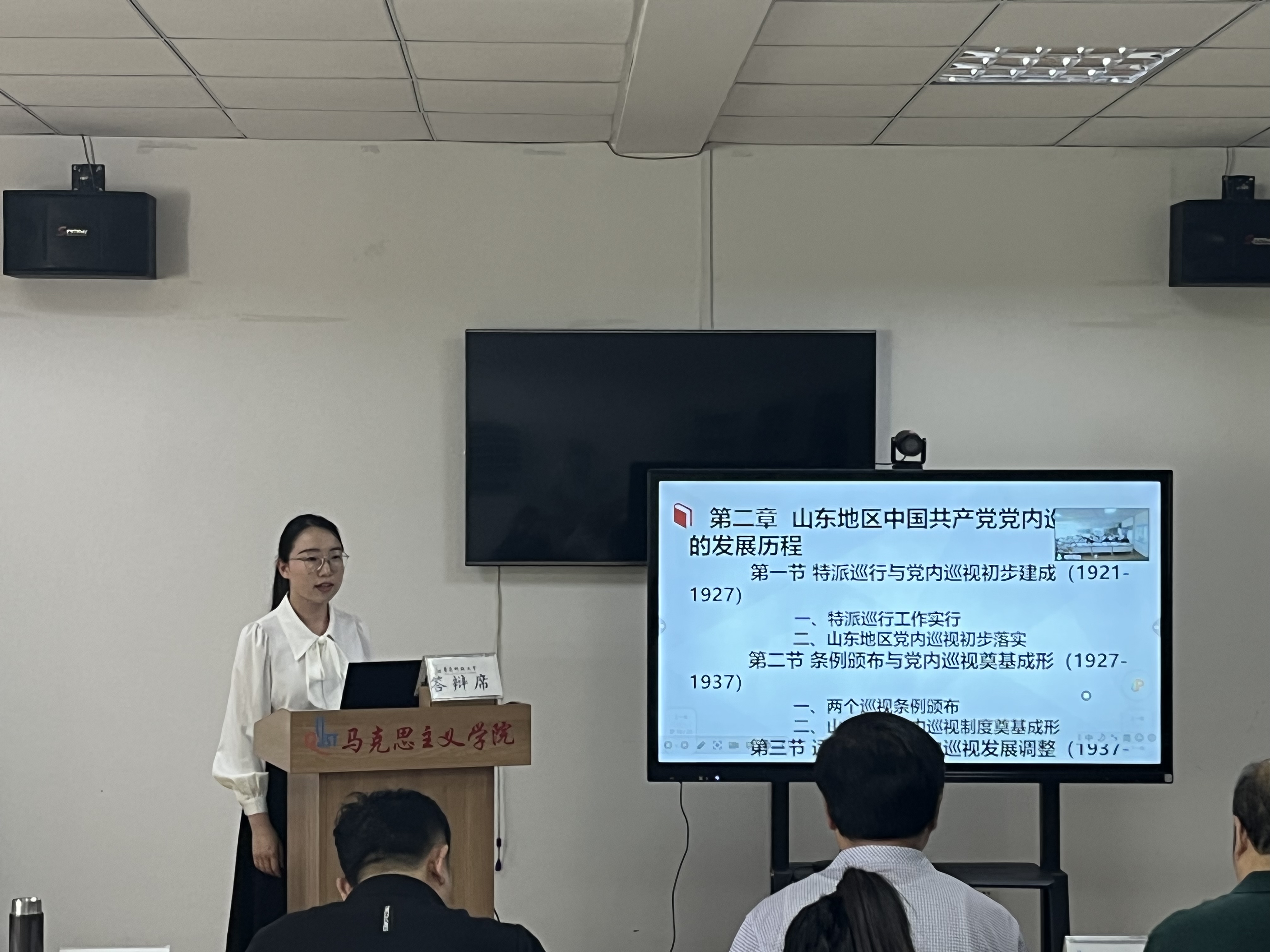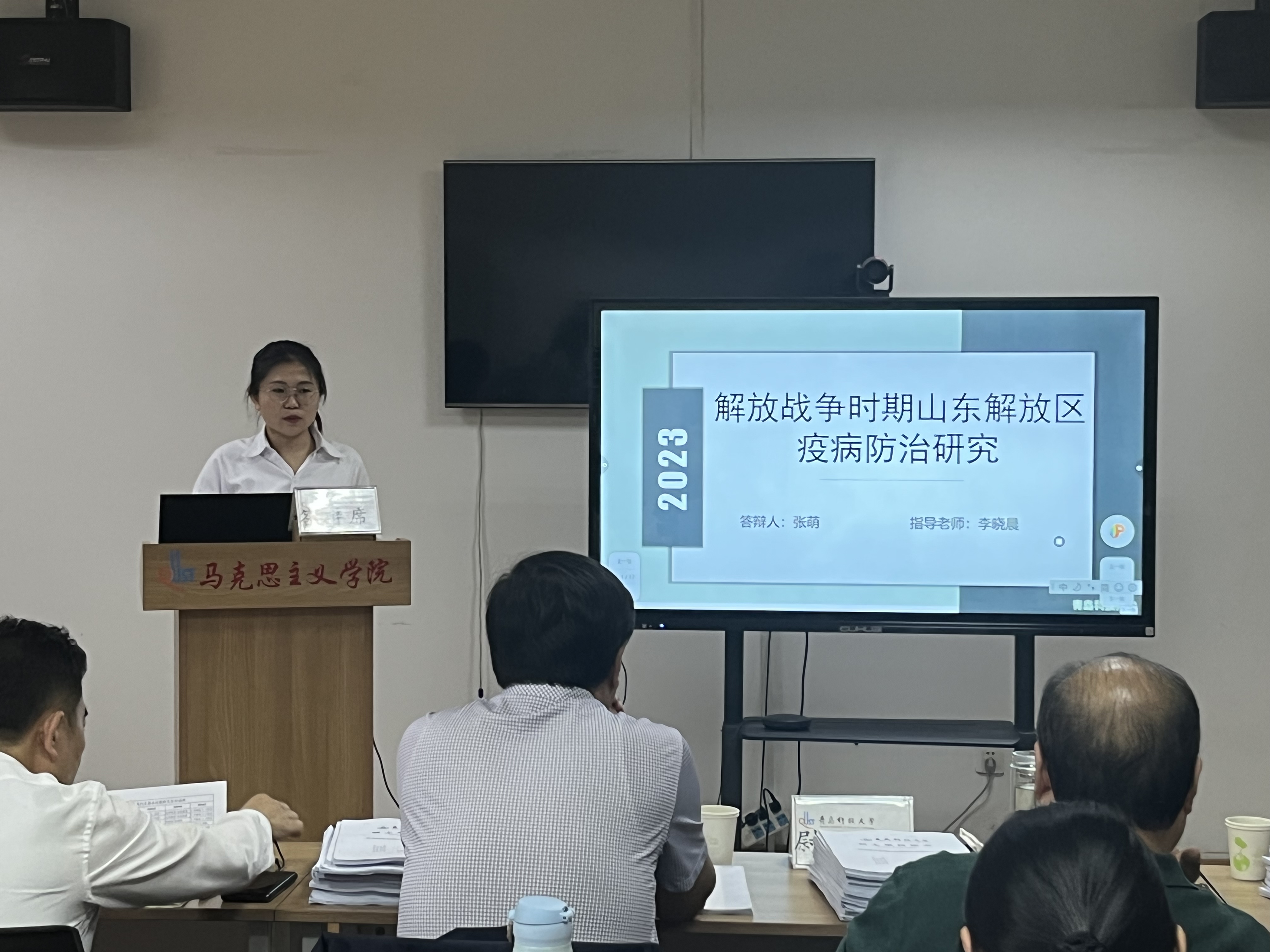 思想政治教育、中国近现代史基本问题研究方向的答辩会在2010室举行。答辩秘书刘彩萍介绍了答辩委员会成员及答辩流程。参加论文答辩的研究生崔淑玥、杜原妃、韩新怡、郝彤、李彩虹、刘航宇、吕凤玲、王宇、徐斐、于汭生、张军鹏、张美、张萌、赵欣荻分别汇报了自己的研究方法、创新点及论文写作思路框架等。各位专家针对员工的论文提出了修改意见及相关问题,随后答辩员工回答了各位专家老师的问题。最后答辩委员会对研究生的论文进行表决评选。