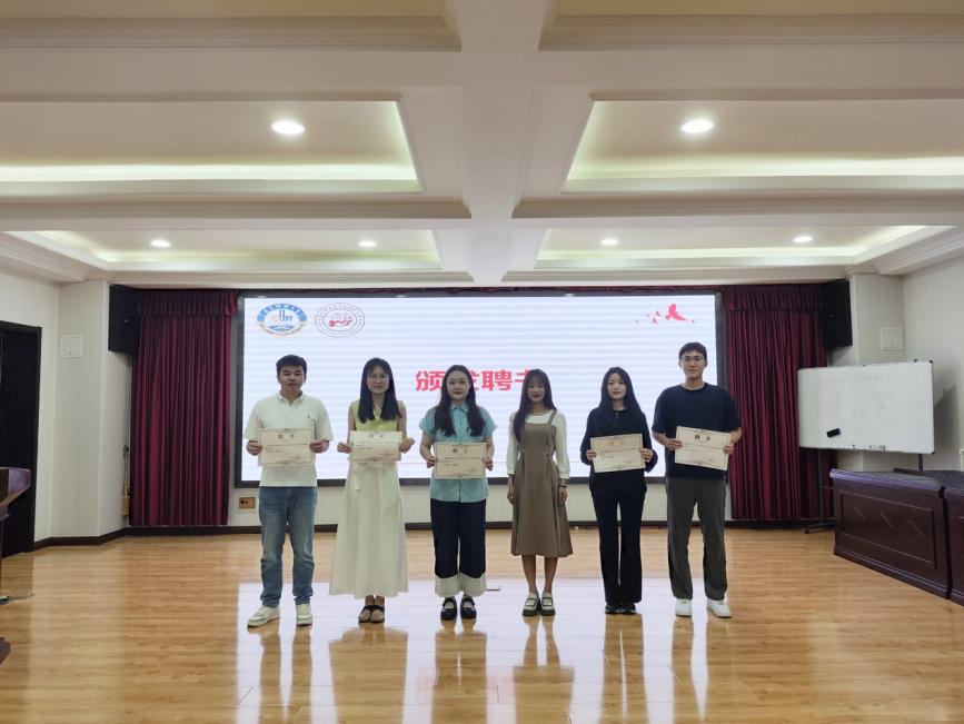 活动进行第二项,bevictor伟德官网团总支书记李文睿老师为五位宣讲人颁发就业领航宣讲员聘书并合影留念。