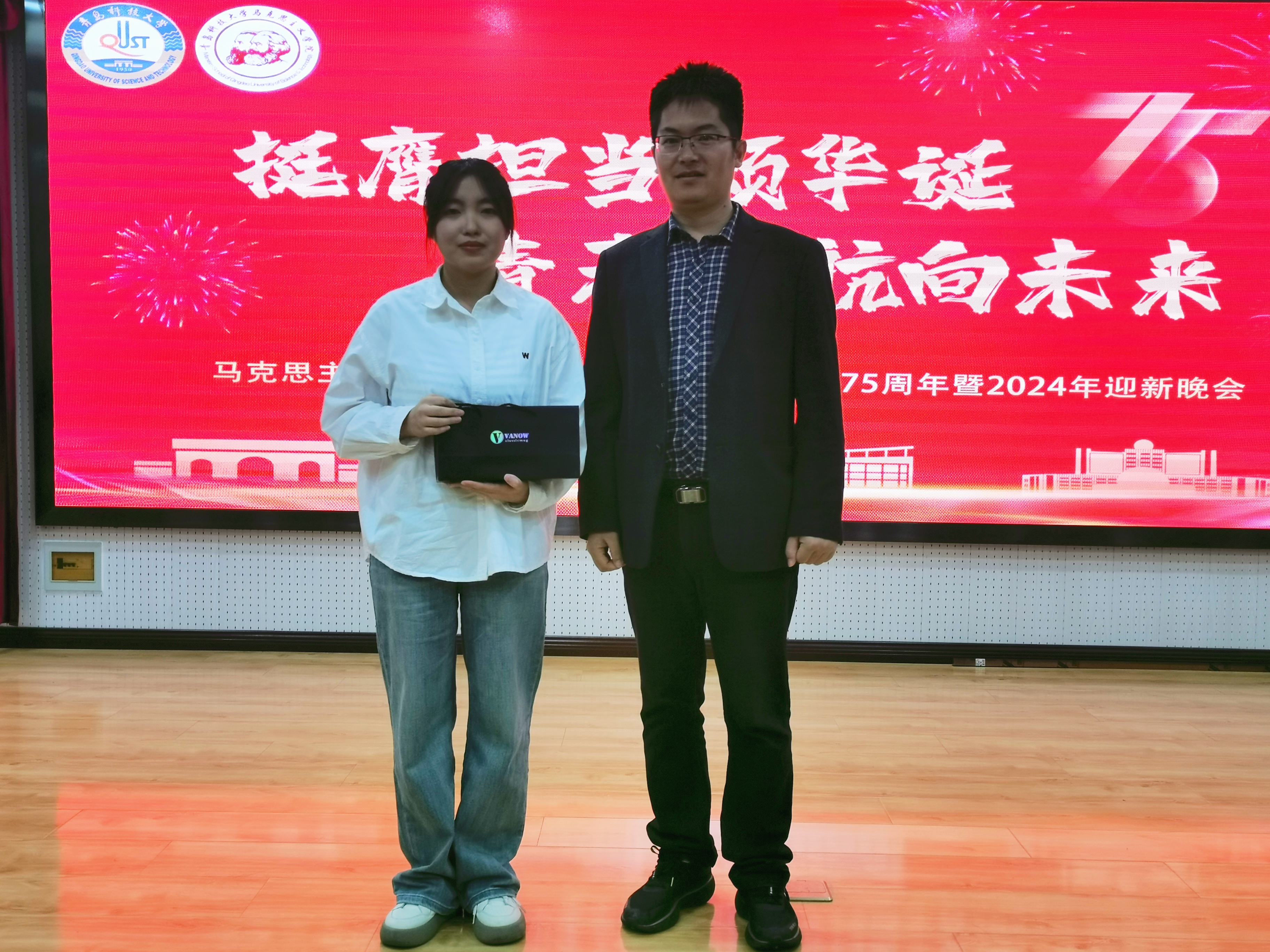 为欢迎2024级新生,庆祝新中国成立75周年,近日,bevictor伟德官网于学术报告厅举办“挺膺担当颂华诞,青春起航向未来”庆祝中华人民共和国成立75周年暨2024级研究生迎新晚会。公司部分教师及全体研究生参加此次活动。本次活动由2024级研究生毛静冉、刘知润主持。
