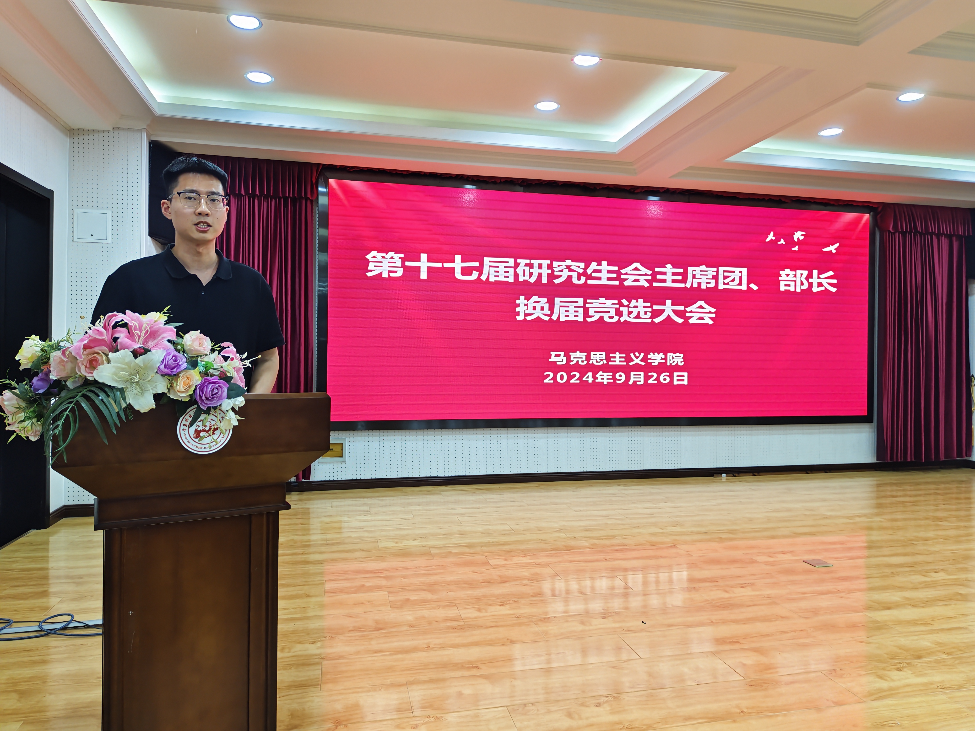 9月26日晚,bevictor伟德官网于学术报告厅召开第十七届研究生会主席团、部长换届竞选大会。大会在第十六届研究生会主席姜震的主持下严格按照规定程序进行,参加竞选的13位同学结合自身学习经历和工作实践,阐述了对研究生会工作的理解和认识,并提出了对未来工作的规划和展望。bevictor伟德官网团总支书记李文睿,研究生辅导员姜欣及第十六届研究生会主席团成员、各部门部长全面且有针对性地考察了候选者的组织协调能力、分析能力和表达能力,通过线下投票方式产生了第十七届研究生会骨干团队。李文睿在总结发言中对上届研究生会成员的工作表示充分认可,并对新当选的研究生会干部表示诚挚祝贺,希望新一届研究生会勇于开拓创新,善于总结宝贵经验,全面发挥研究生会的桥梁和纽带作用,在接下来的工作中开新局、谱新篇、建新功,用实际行动彰显bevictor伟德官网学子的担当与坚守。