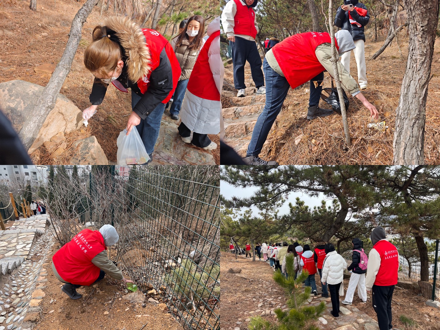 活动中,同学们携带环保工具,仔细搜寻并捡拾了南苑食堂后登山步道上的各类垃圾,并对公司楼及周边公共区域进行了全面而细致的清扫工作,用自己的实际行动弘扬“奉献、友爱、互助、进步”志愿服务精神,积极倡导文明行为新风尚。