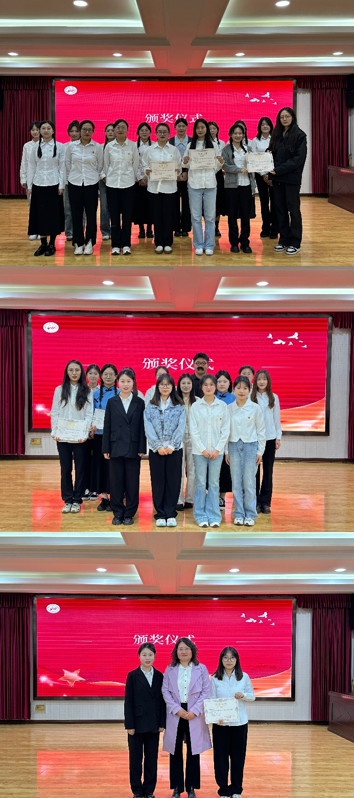 比赛结束后,经三位评委老师点评打分,产生一等奖一组、二等奖二组、三等奖三组,评委老师为获奖同学颁奖并合影留念。