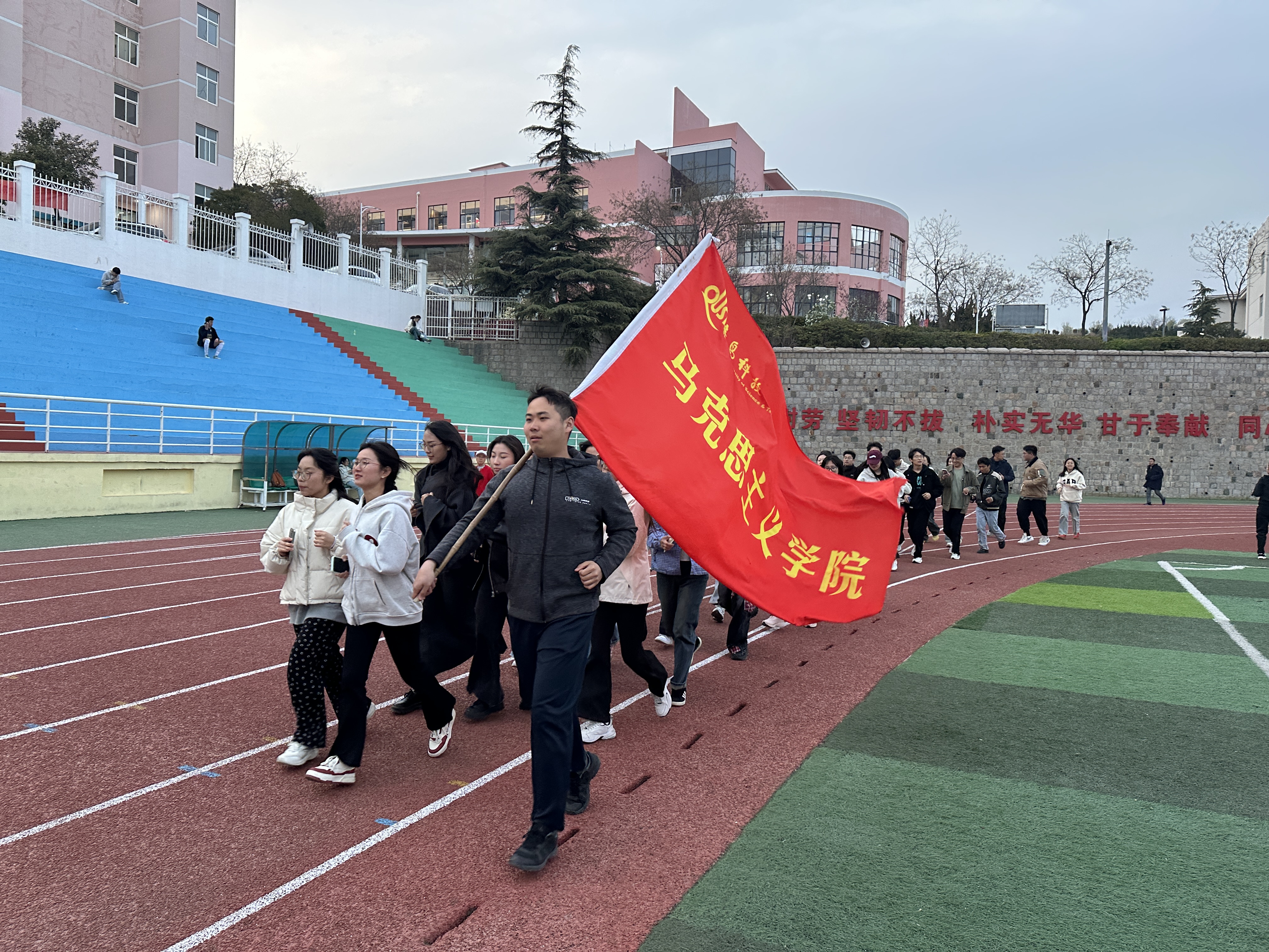 在文体部部长王硕的组织下,同学们进行了充分的热身准备,确保身体达到最佳运动状态。随着指令发出,同学们佩戴着五彩斑斓的荧光手环,在领跑员的带领下有序出发,跃动的光影与青春的活力交织成校园夜幕下最绚丽的风景线。