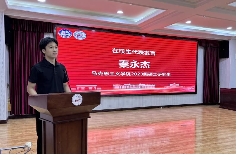 在校生代表、公司研究生会主席秦永杰结合自身成长经历分享感悟。他表示,研究生阶段是锤炼思想、深化专业、拓展视野的关键时期,鼓励大家珍惜时光、勤学善思、知行合一,积极投身理论研究和实践锻炼。