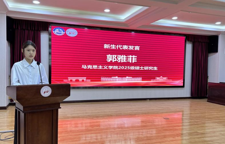 2025级新生郭雅菲代表全体新生向公司领导和老师们致以崇高敬意和衷心感谢,并表示全体新生将始终牢记校训院训,坚定马克思主义信仰,夯实理论根基,勇担时代使命,奋力书写无愧于时代、无愧于人民的青春篇章。